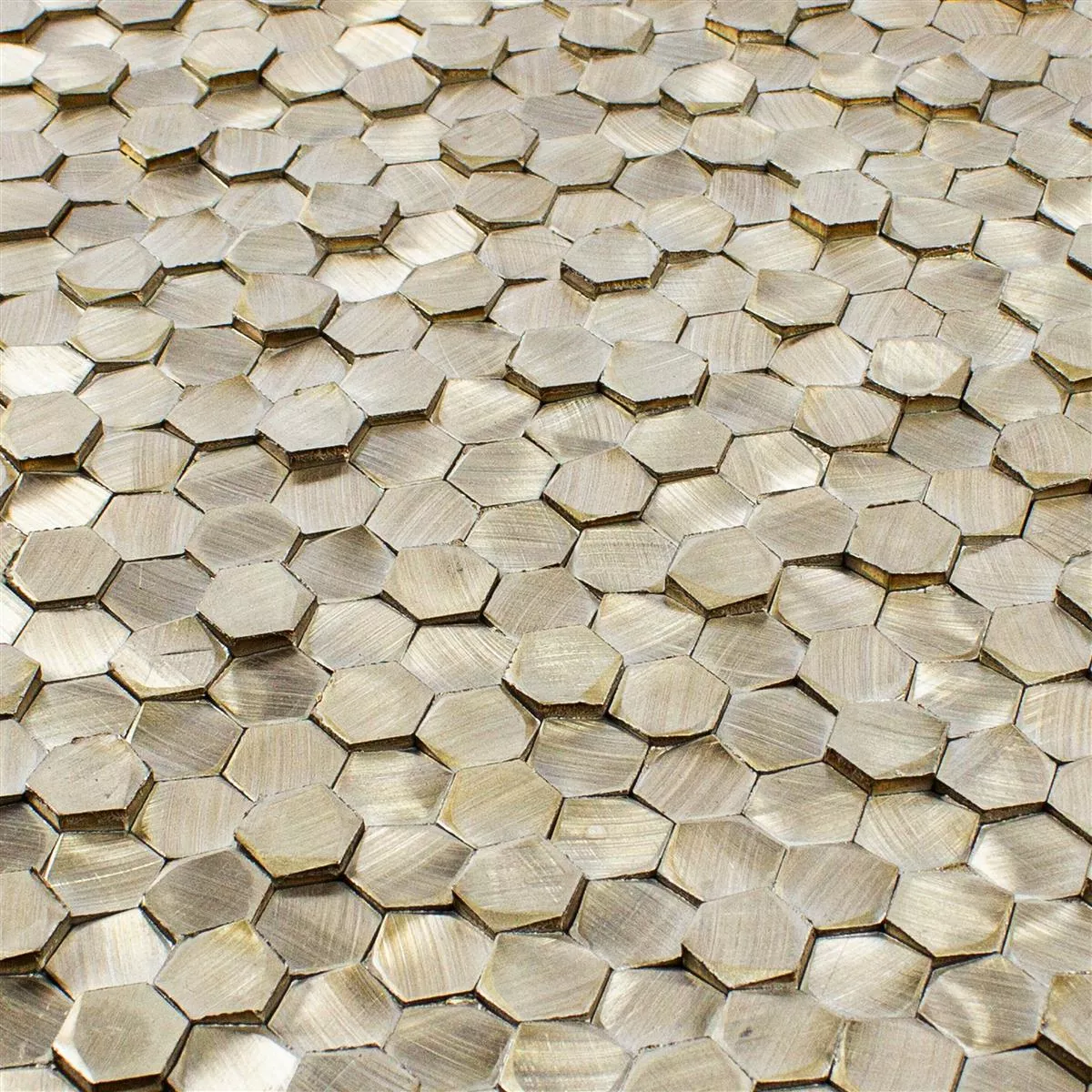Pietrele individuale au o dimensiune de 15x17mm și conferă plăcii un format hexagonal interesant. Suprafața plăcilor este periată și mată, oferindu-le o experiență tactilă plăcută. Aspectul 3D sporește efectul vizual și oferă plăcilor un aspect modern și atractiv.