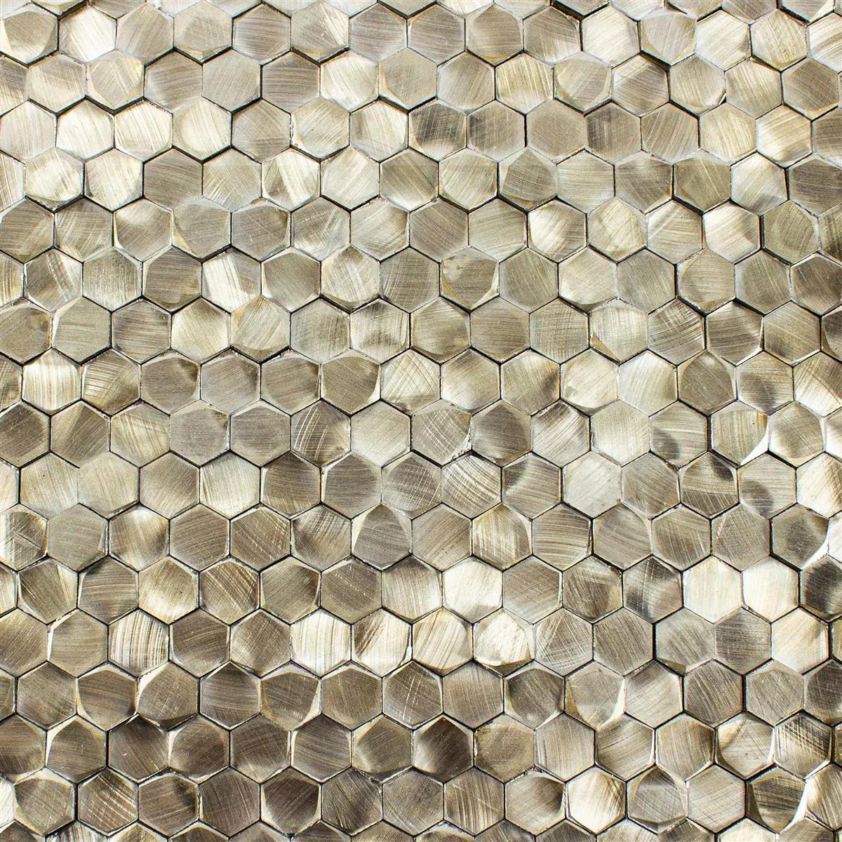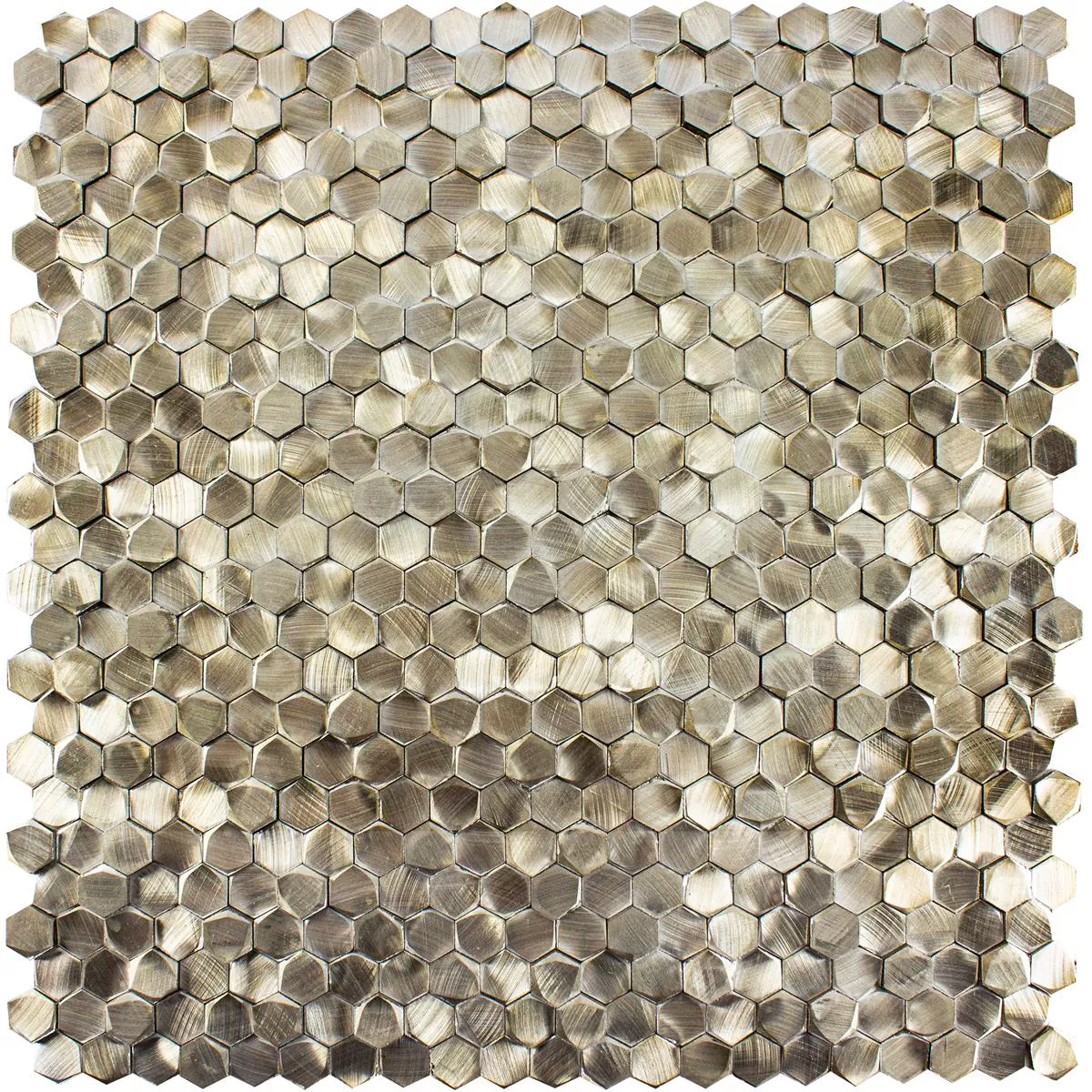 Placile de mozaic metalic din aluminiu in culoarea McAllen Gold sunt o alegere eleganta si moderna pentru designul interior. Fabricate din metal de înaltă calitate, în special aluminiu, aceste plăci oferă o durabilitate impresionantă și un finisaj auriu atractiv.