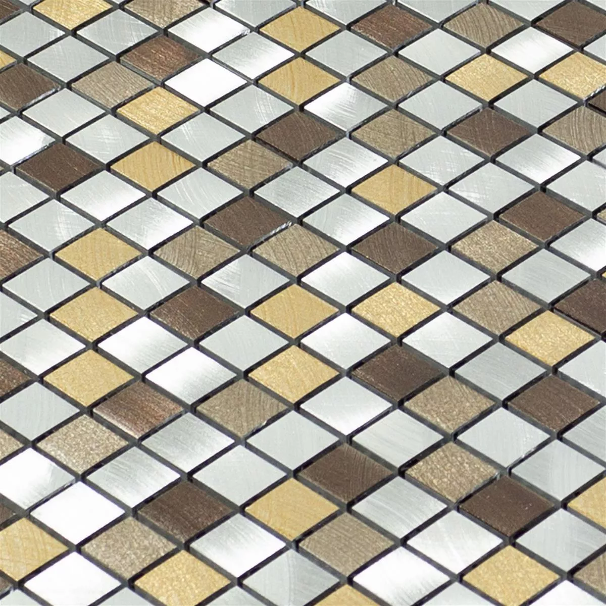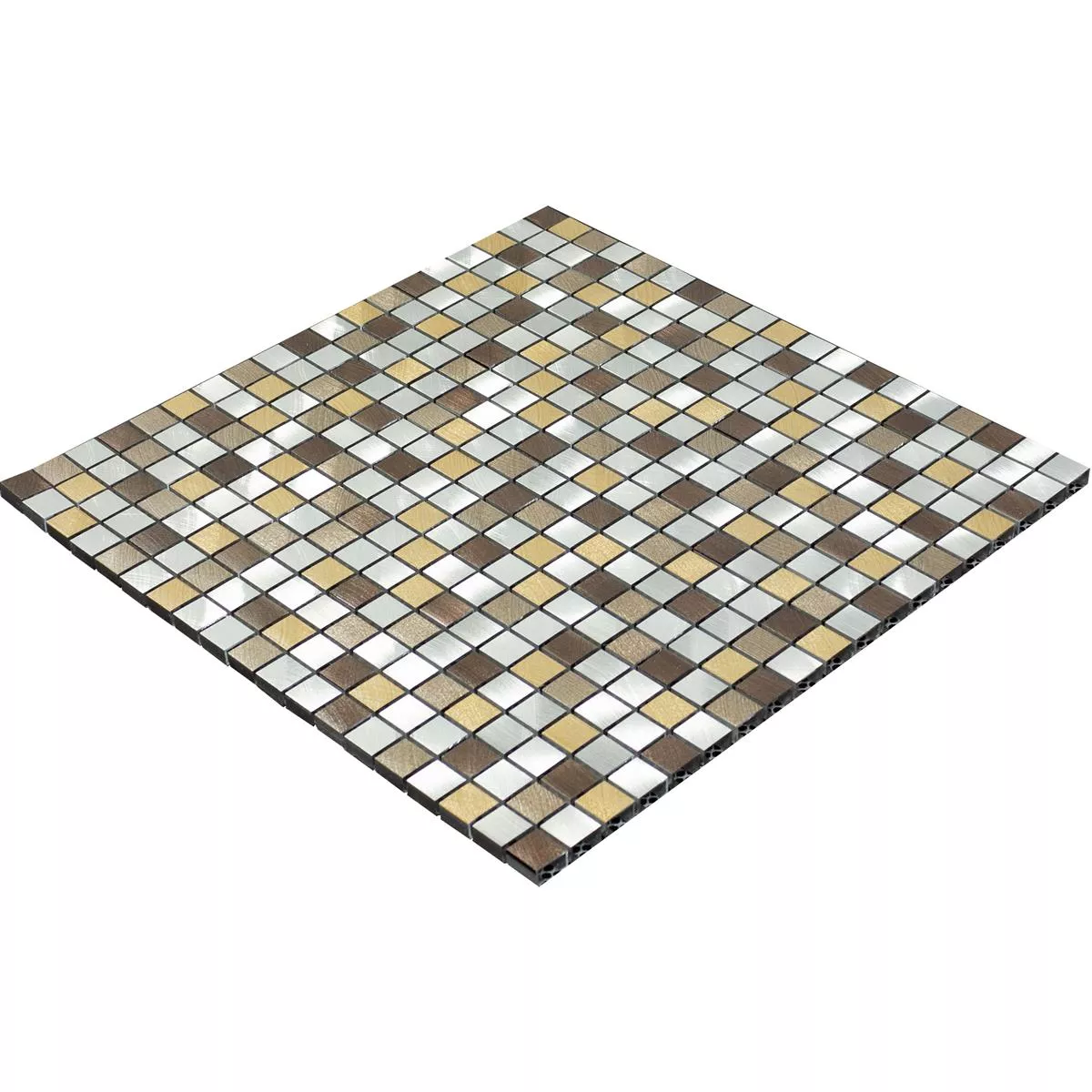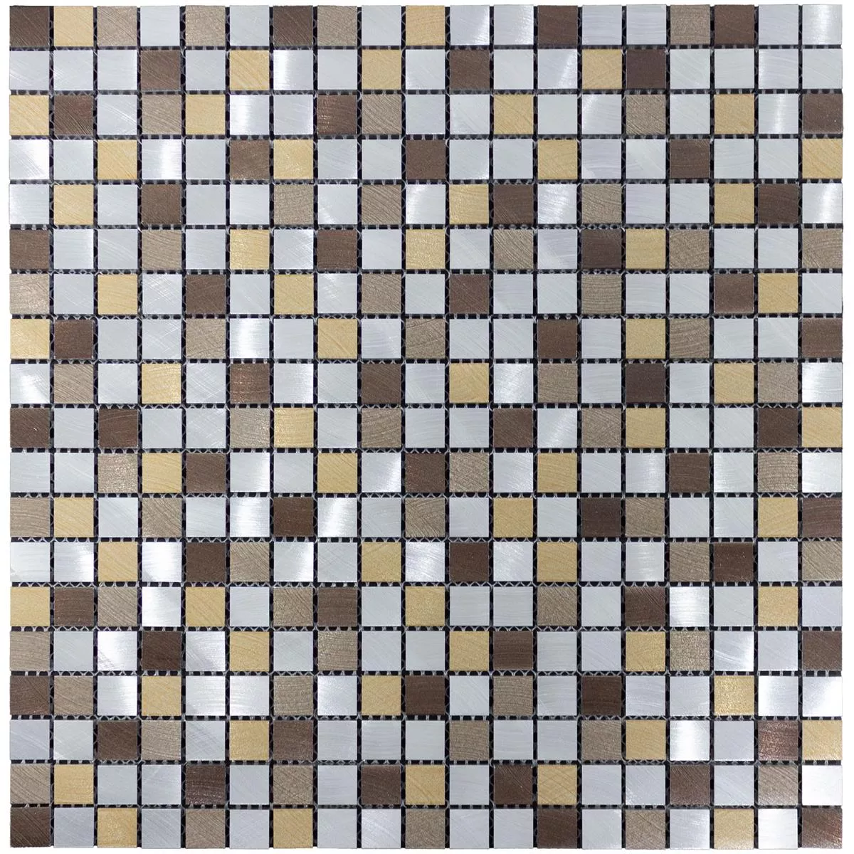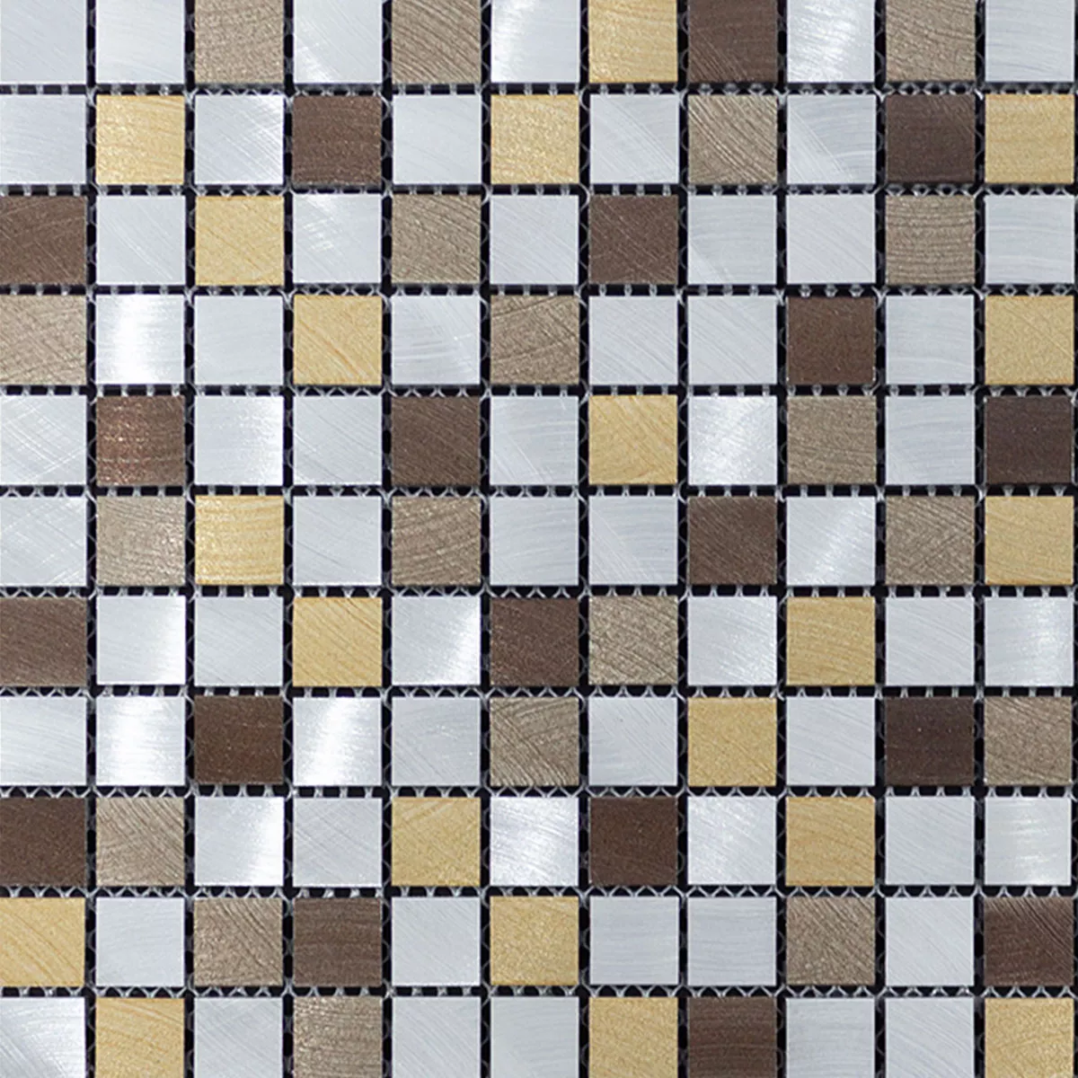 Descoperiți eleganța plăcilor de mozaic metalic din aluminiu Techvista Brown! Aceste plăci pătrate de mozaic (15x15mm) oferă interiorului tău o frumusețe atemporală. Suprafața mată, periată, în maro și argintiu, creează o atmosferă elegantă.