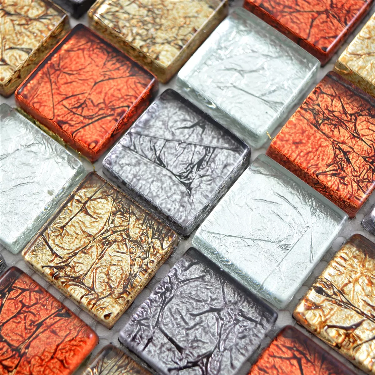 Model din Mozaic De Sticlă Gresie Curlew Roșu Maro Argint Pătrat