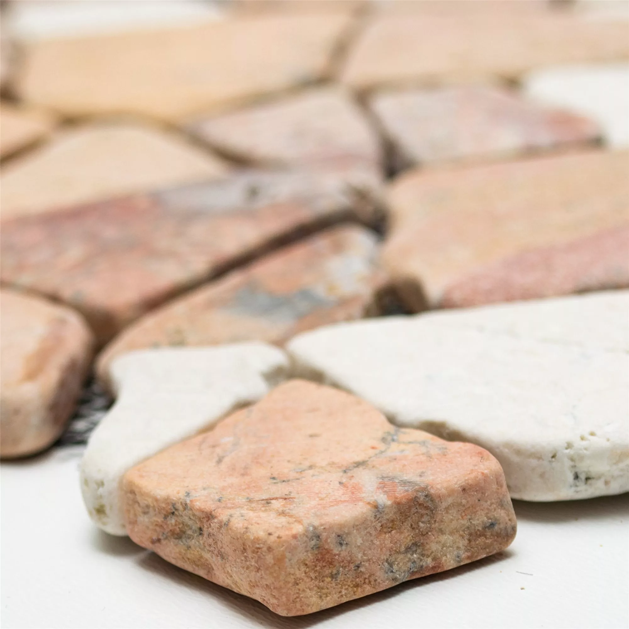 Descoperiți varietatea luxoasă a mozaicului de carieră de marmură Poseidon în culorile elegante roșu, crem și rosso. Fiecare covoraș al acestor plăci rafinate mozaic oferă o suprafață de 0,093 m² și este perfect pentru proiectarea pereților și a podelelor atât în interior, cât și în exterior. Cu o grosime de 7 mm și dimensiuni variabile ale pietrei de la 15 la 69 mm, acest mozaic pune accente impresionante în camera ta.