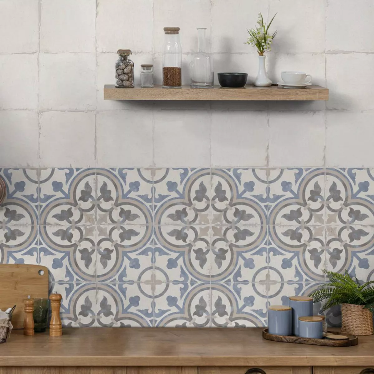 Această placă de porțelan se distinge prin paleta sa atractivă de culori, care include albastru, maro și crem, și se îmbină frumos cu o varietate de stiluri de decor. Suprafața are un finisaj mat, texturat, conferind plăcii o senzație plăcută la atingere și un aspect atrăgător. Datorită proprietăților sale speciale, această placă este antiderapantă, impermeabilă și rezistentă la îngheț.
