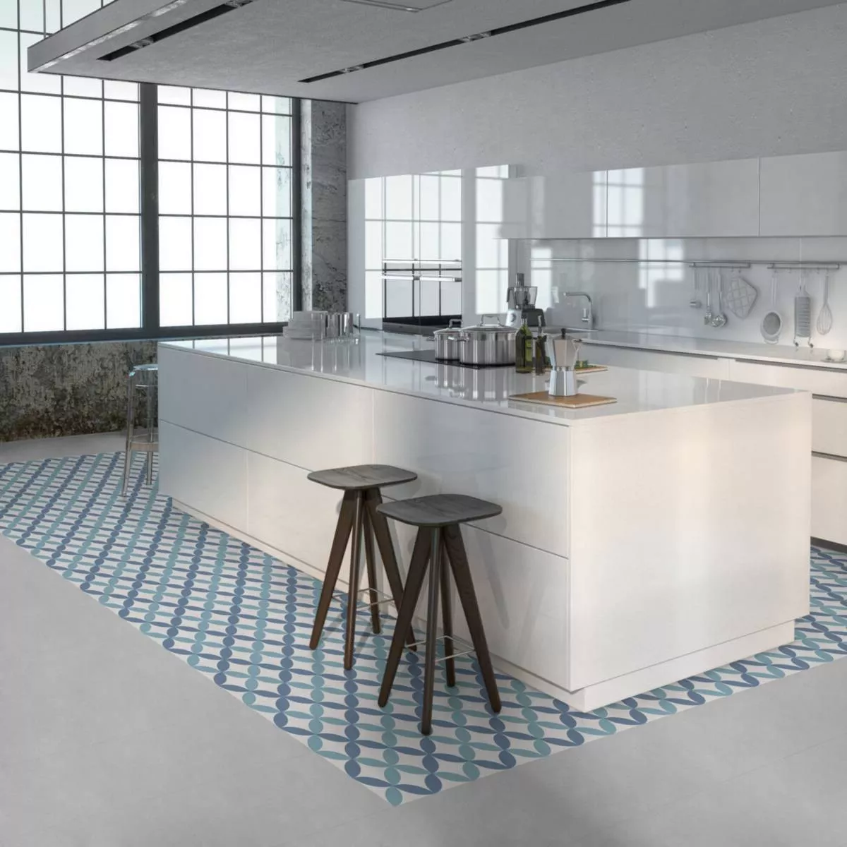 Gresie Aspect de Ciment Atlantica DaVinci Albastru Alb