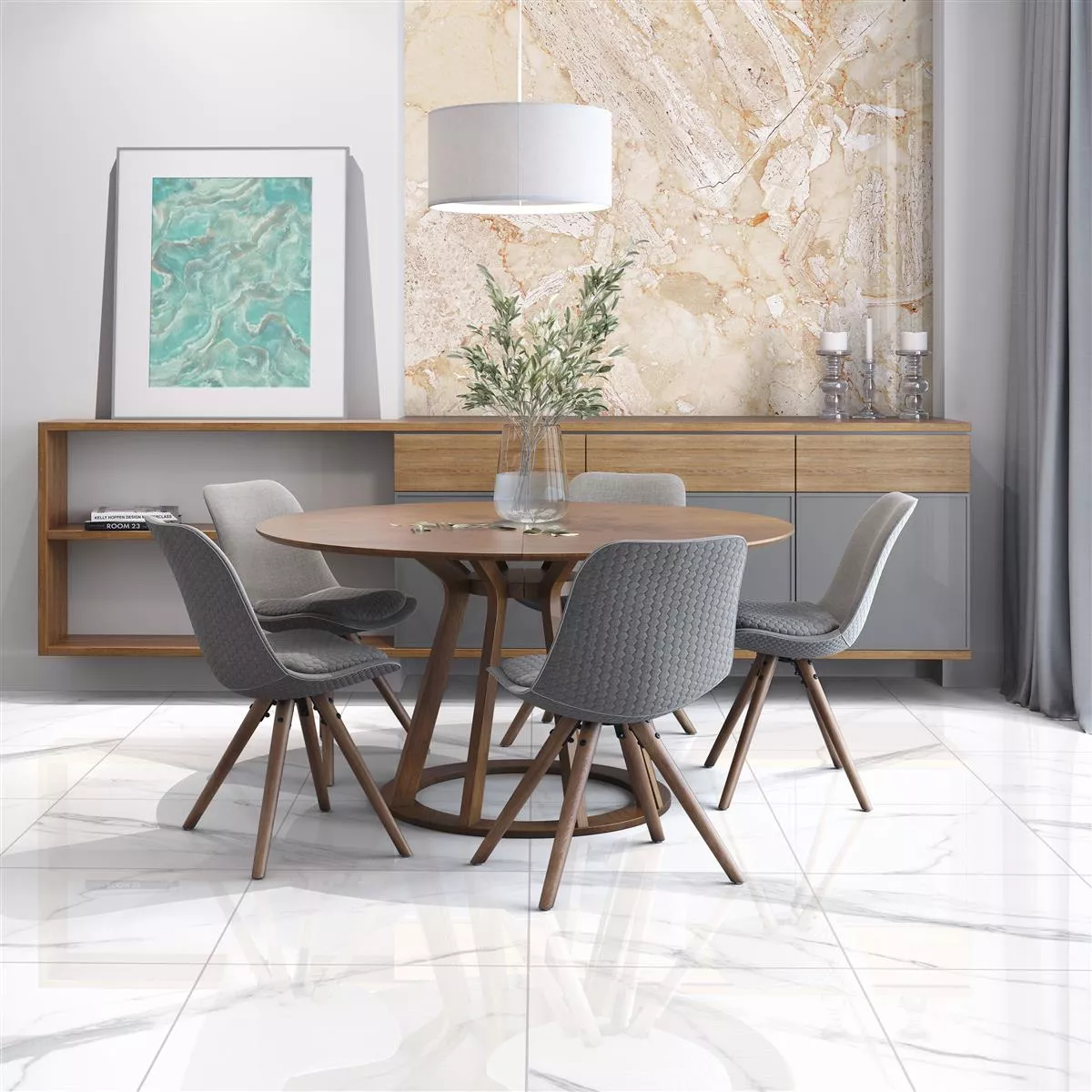 Cu o greutate de 30 kg, sunt robuste si potrivite pentru spatii interioare si umede. Caracteristica de încălzire prin pardoseală îl face o alegere confortabilă pentru zilele reci. Cufundă-te în frumusețea atemporală a acestor plăci cu aspect de marmură și oferă camerelor tale o atmosferă nobilă.