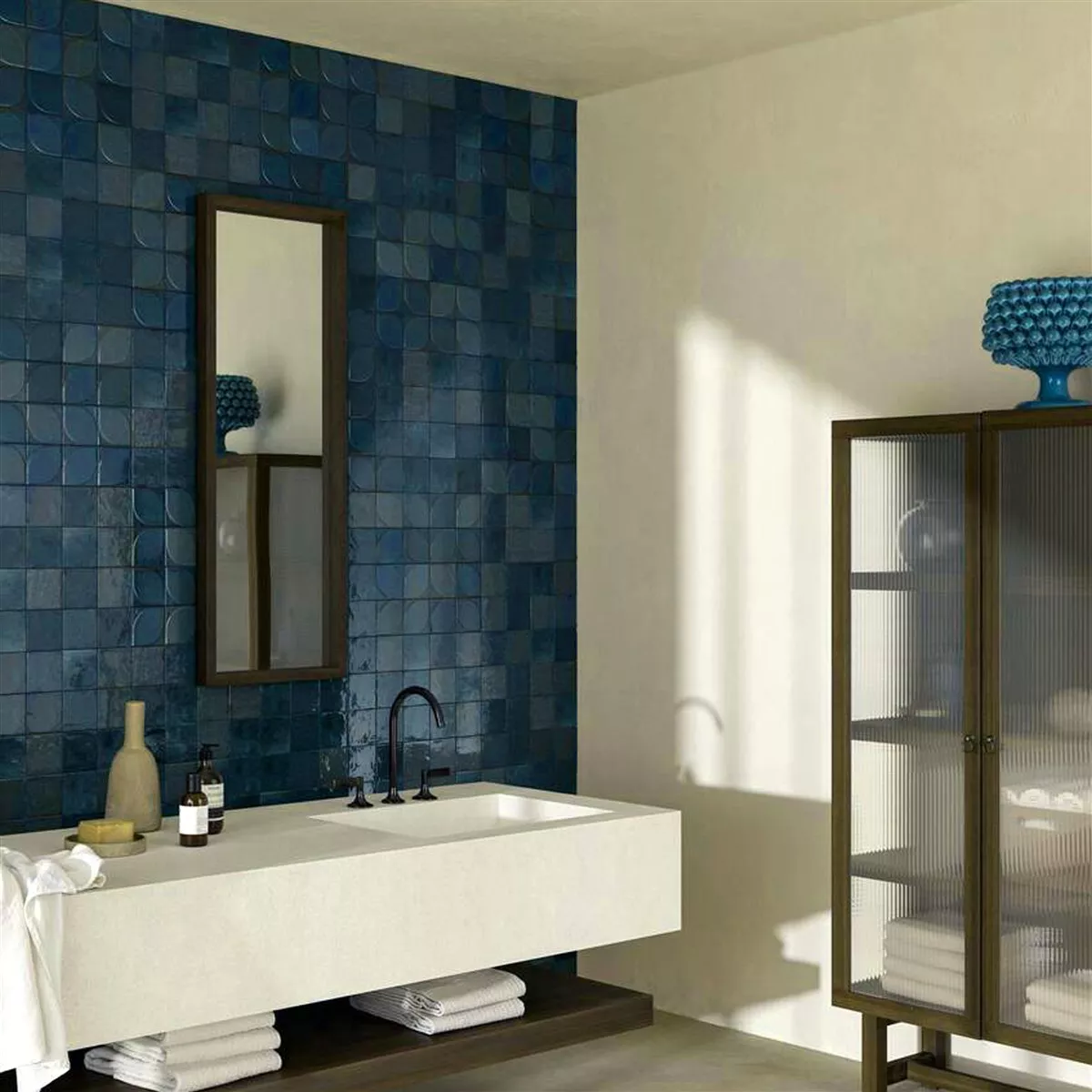 Maryland Meerblau Glänzend 3D Strukturiert 10x10 cm