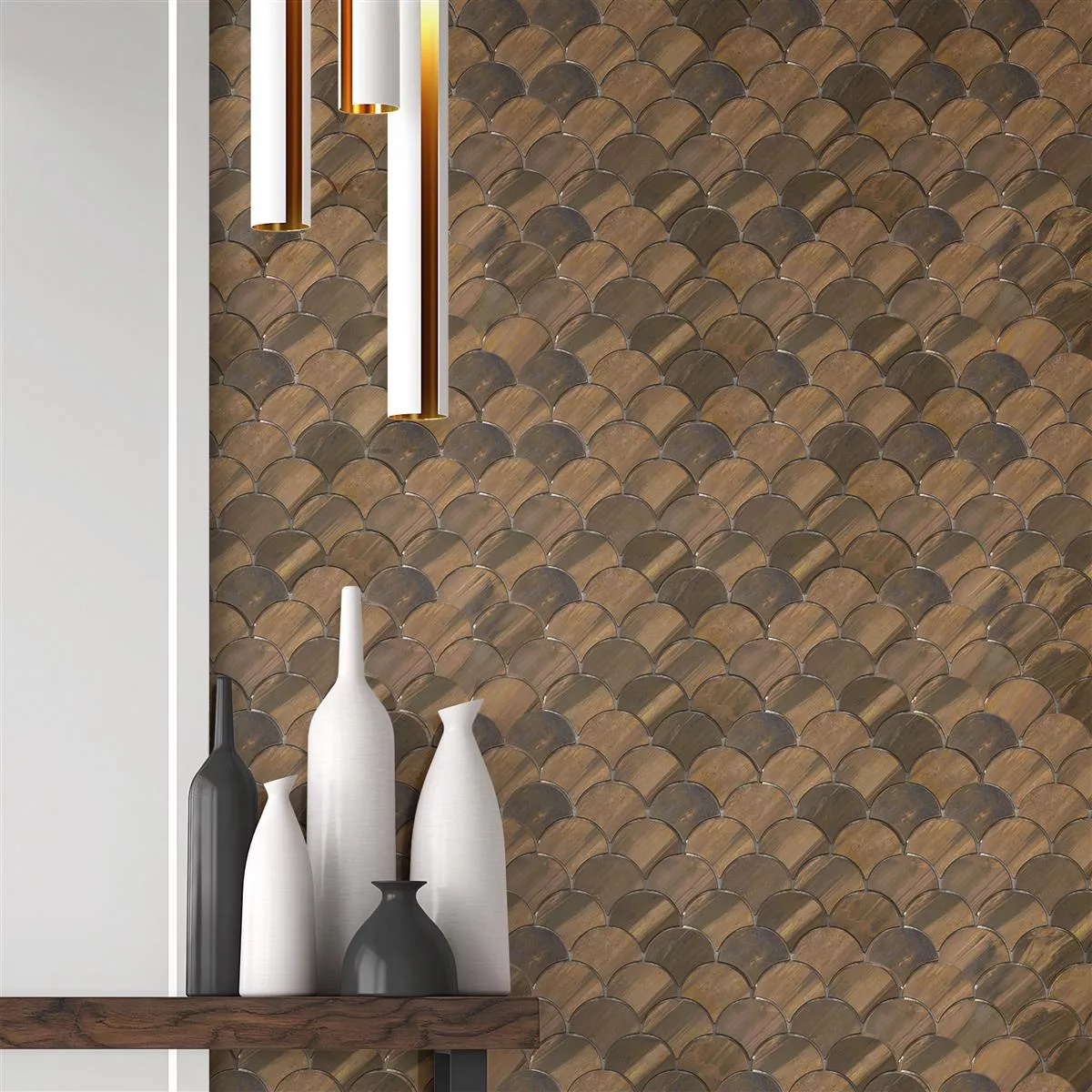 Finisajul mat conferă acestor plăci o rafinament subtil, în timp ce efectul unic de evantai metalic creează o capodopera vizuală. Culoarea maro cald adaugă o atmosferă confortabilă oricărui mediu.