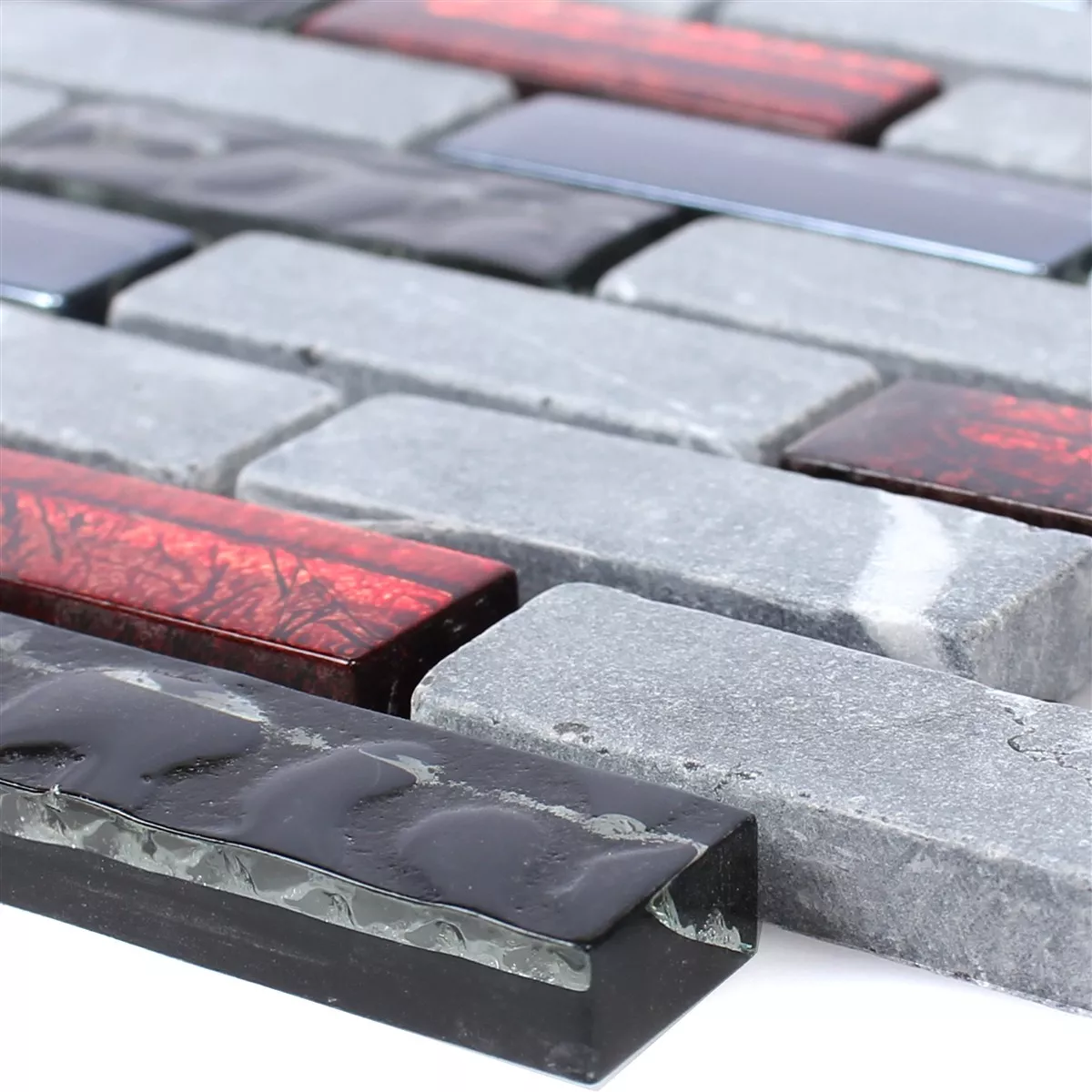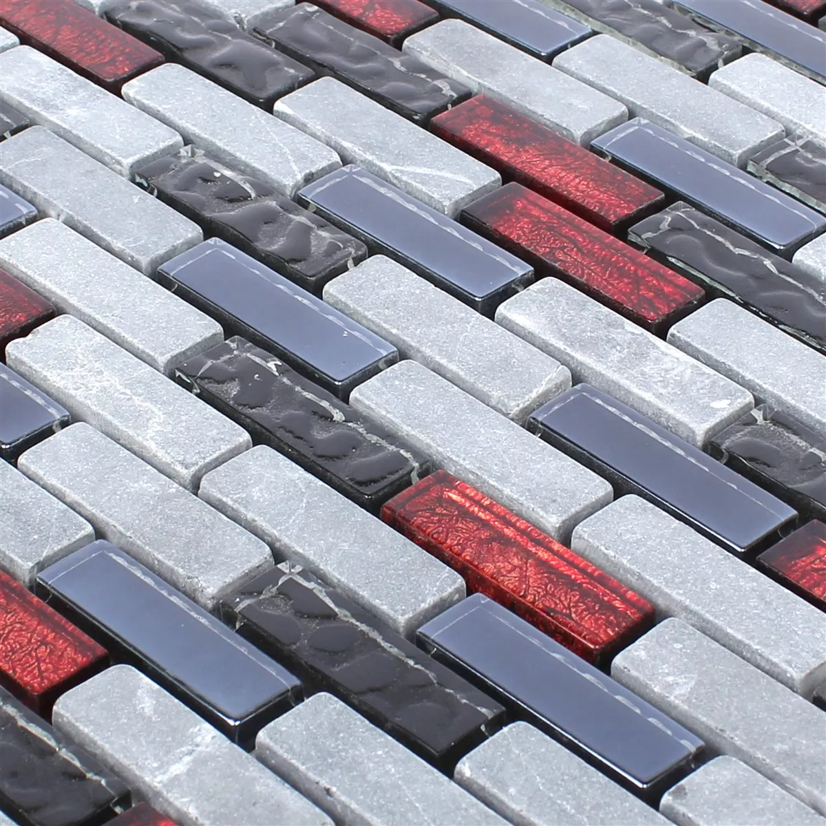 Model din Mozaic De Sticlă Placi De Piatra Naturala Marley Negru Roșu Gri