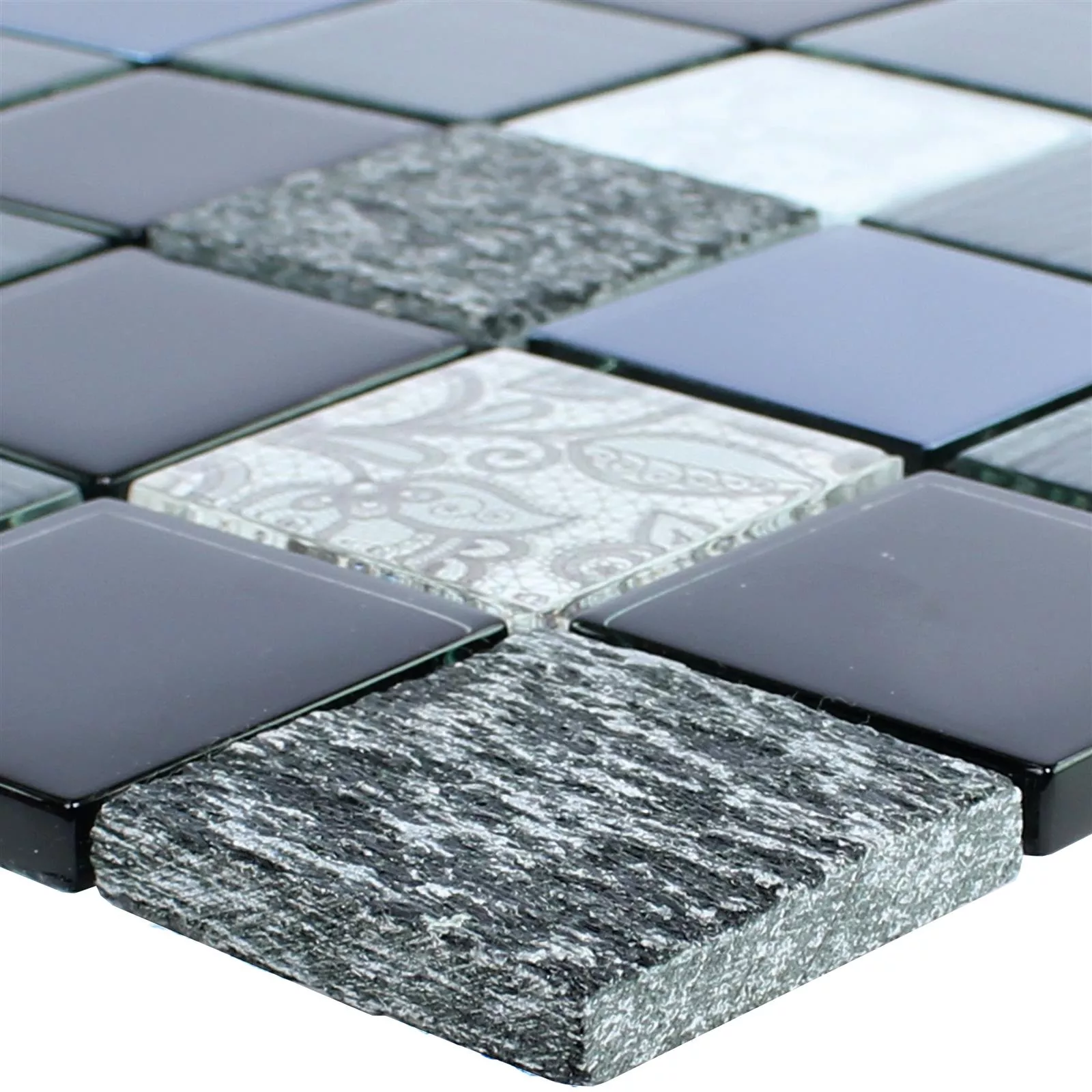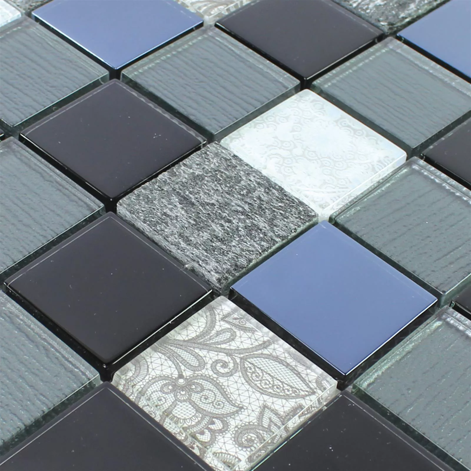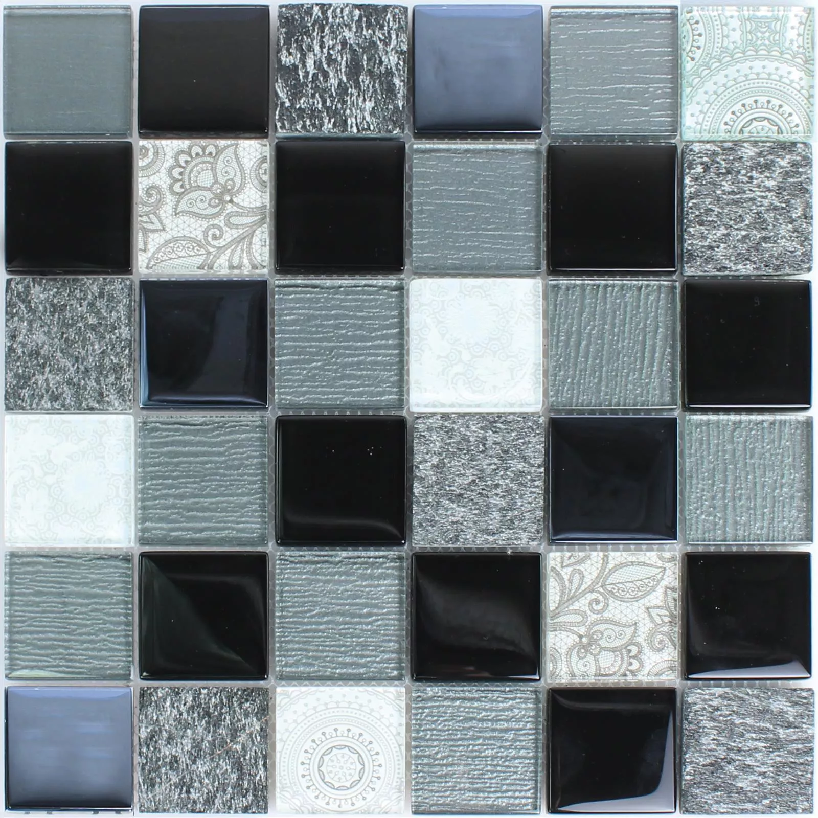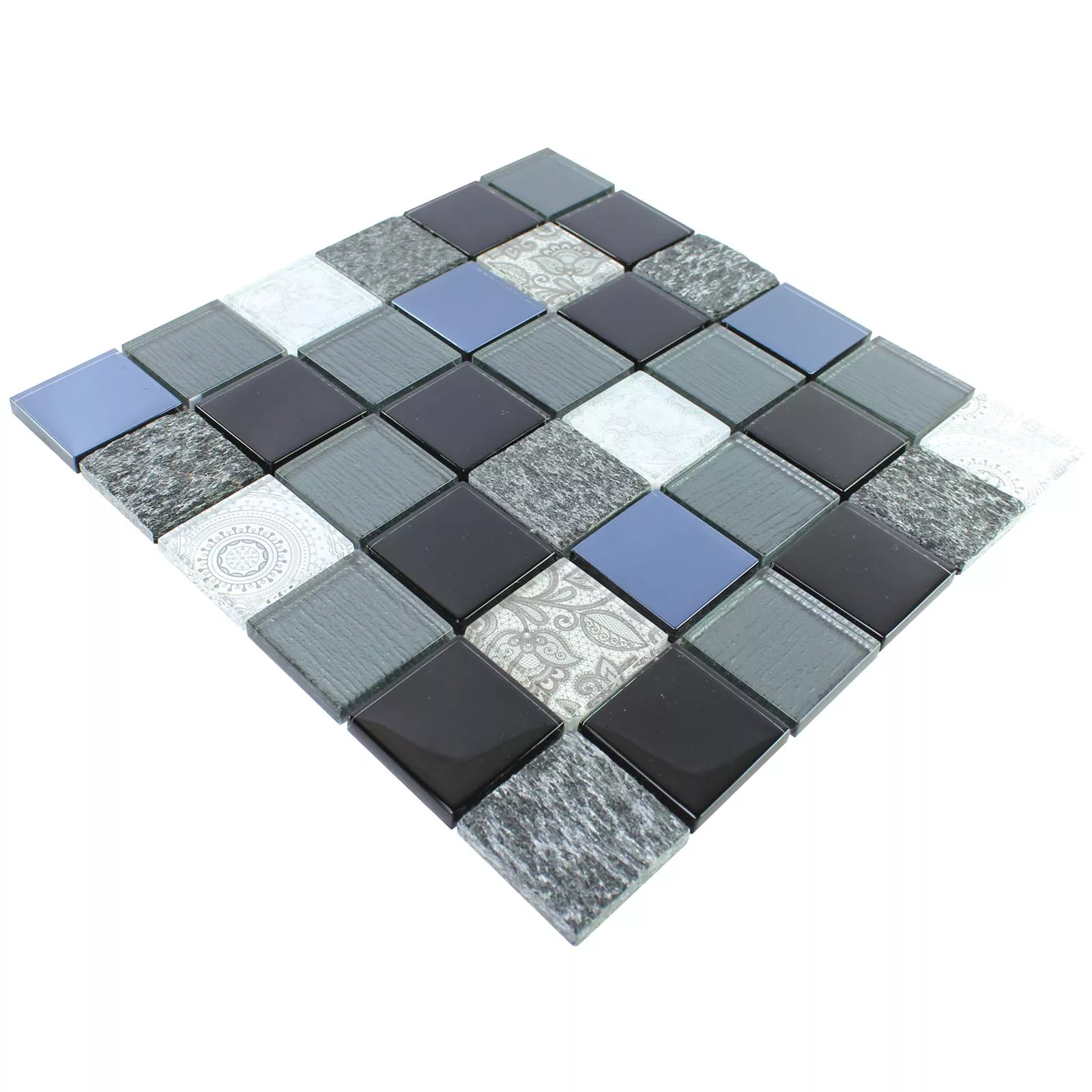 Model din Mozaic Din Piatra Naturala Din Sticla Triopetra Negru Gri Alb