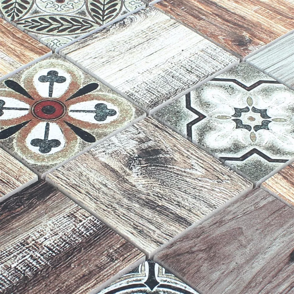 Model din Mozaic Din Piatra Naturala Gresie Parion Aspect De Lemn Maro Inchis
