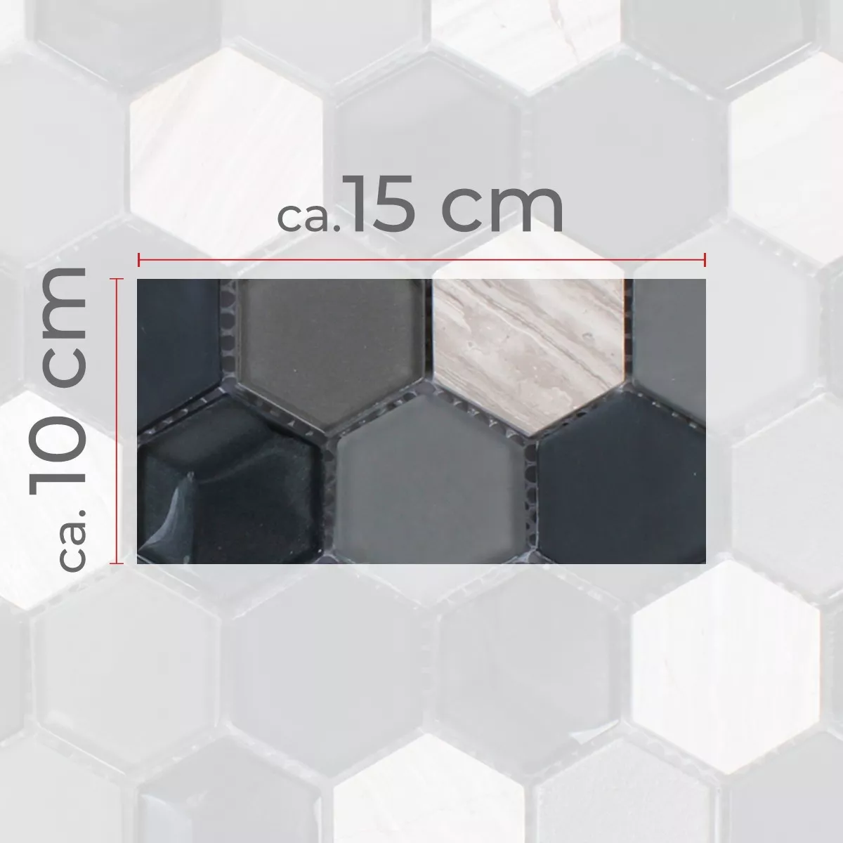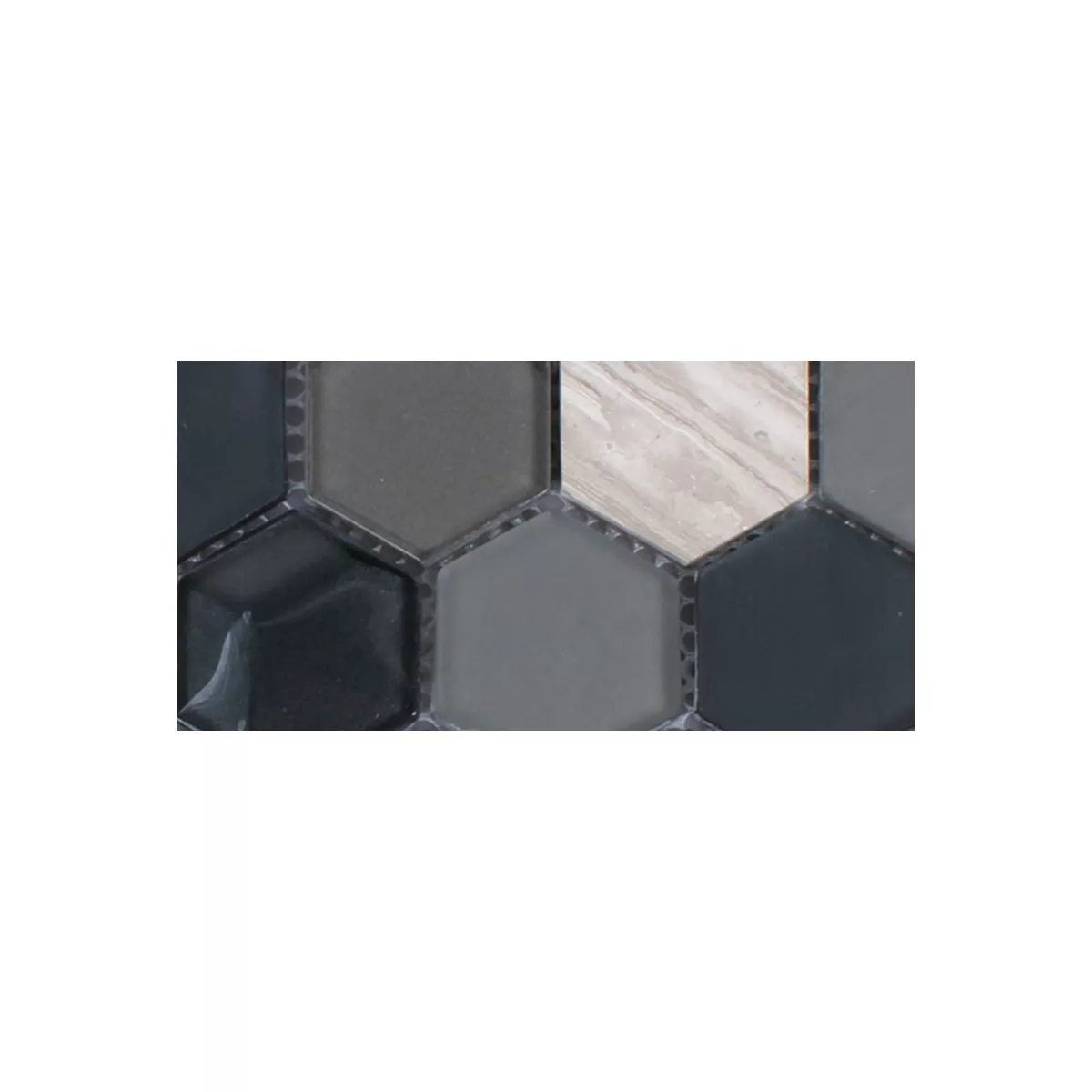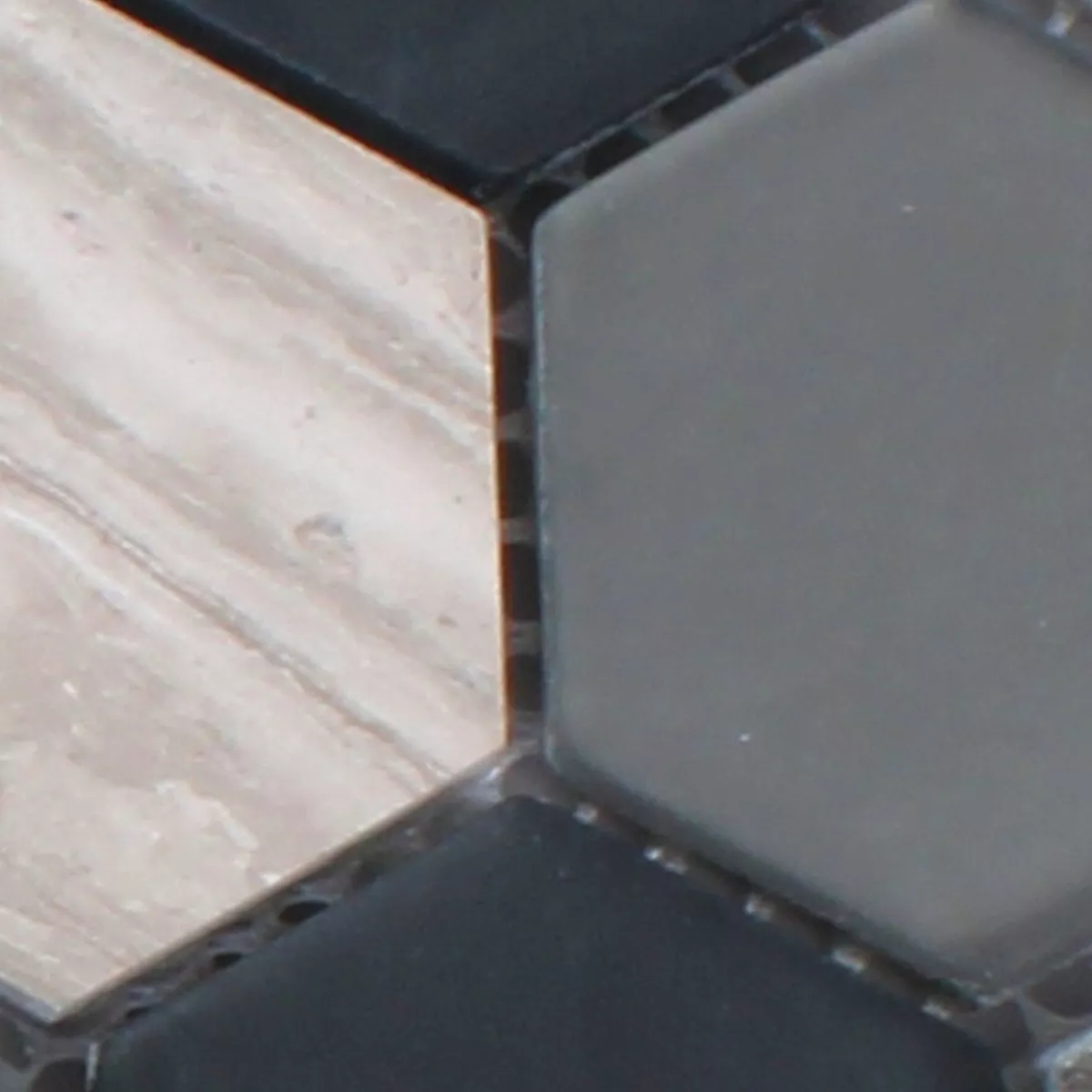 Model din Plăci De Mozaic Hexagon Sticlă Piatră Naturală Negru Gri 3D