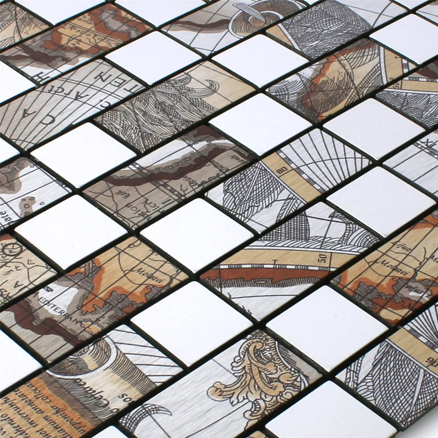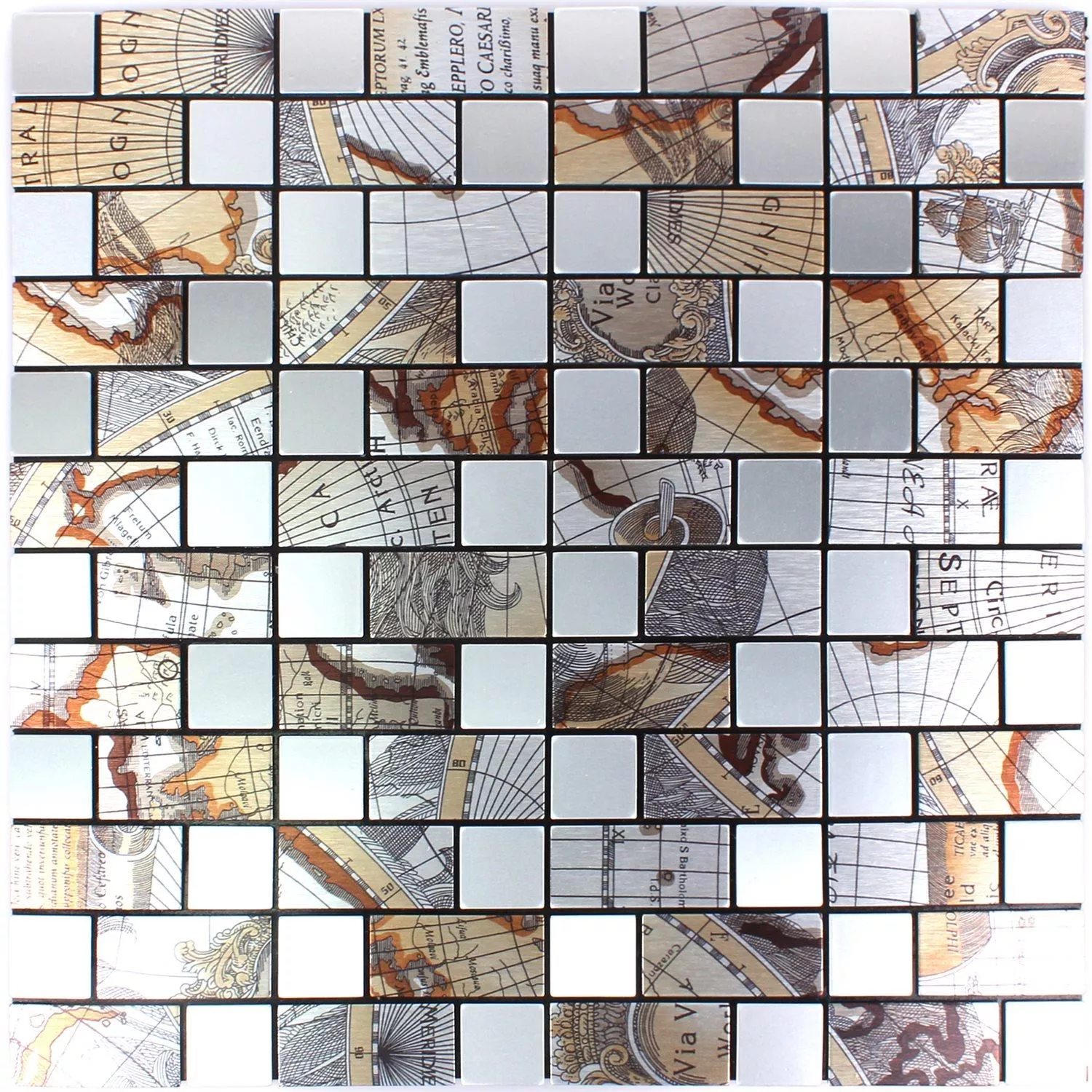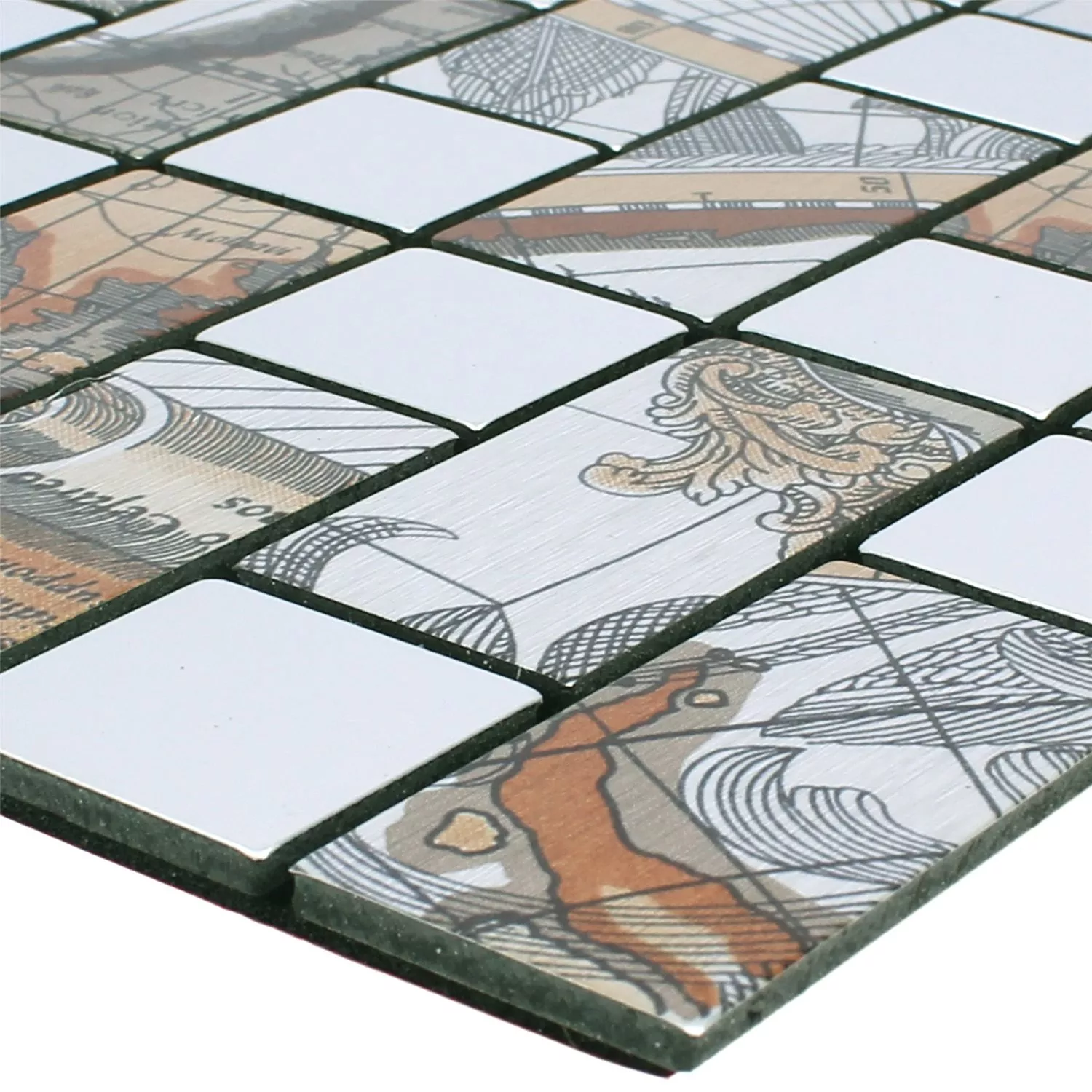 Model din Plăci De Mozaic Metal Autoadeziv Pinta Harta Lumii Argint Dreptunghi