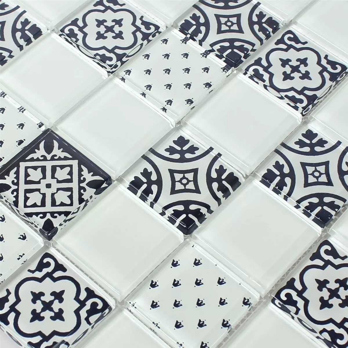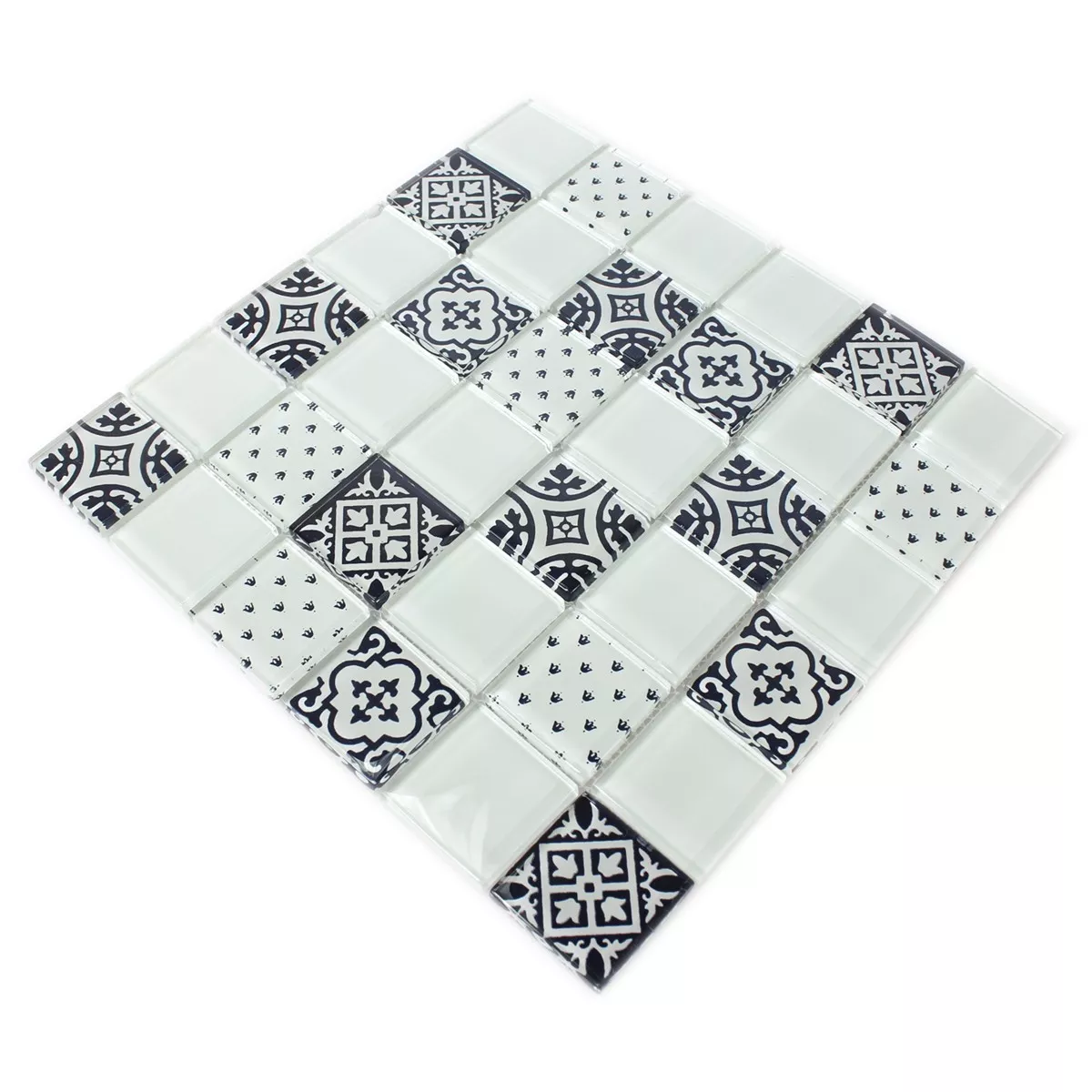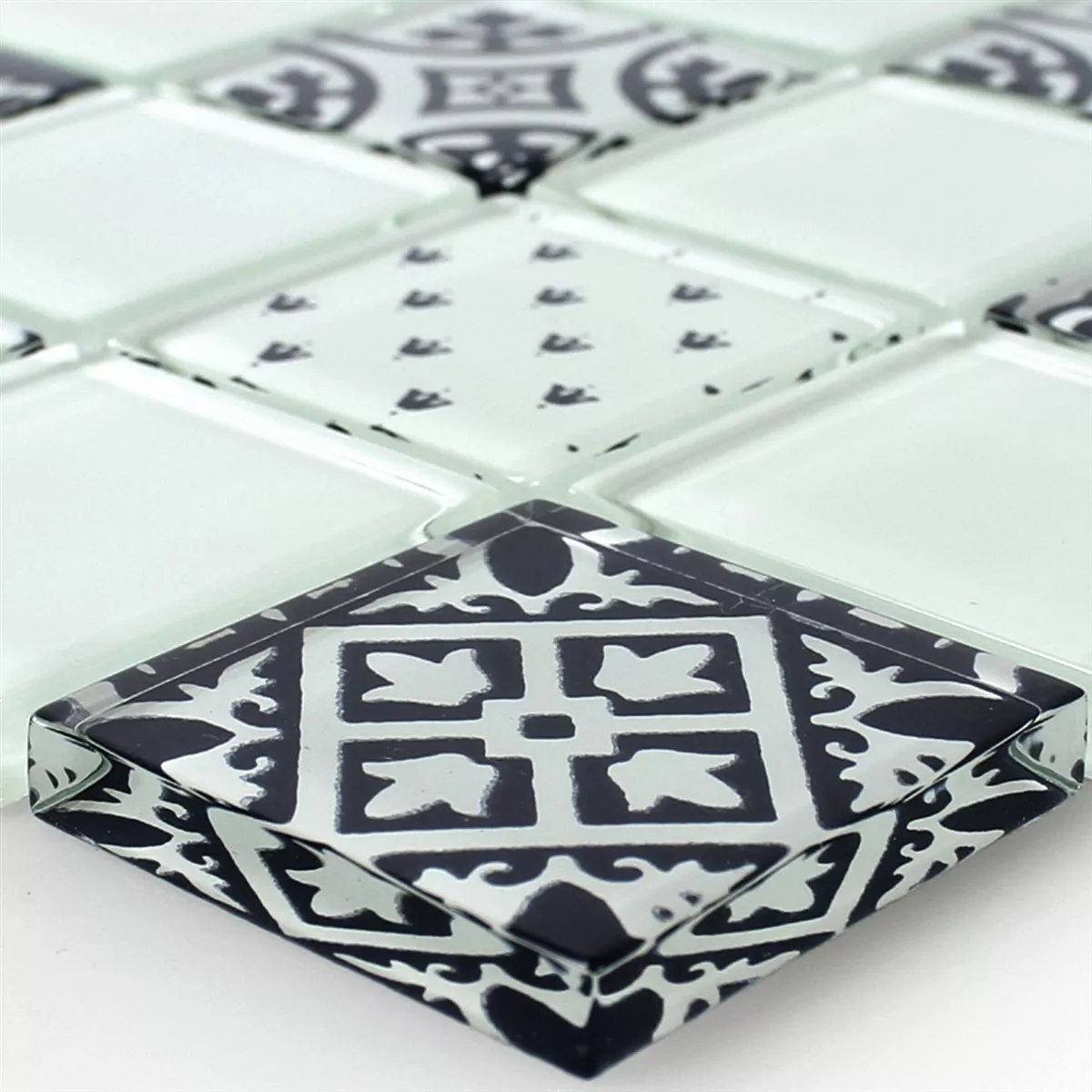 Model din Plăci De Mozaic Sticlă Barock Ornament Alb