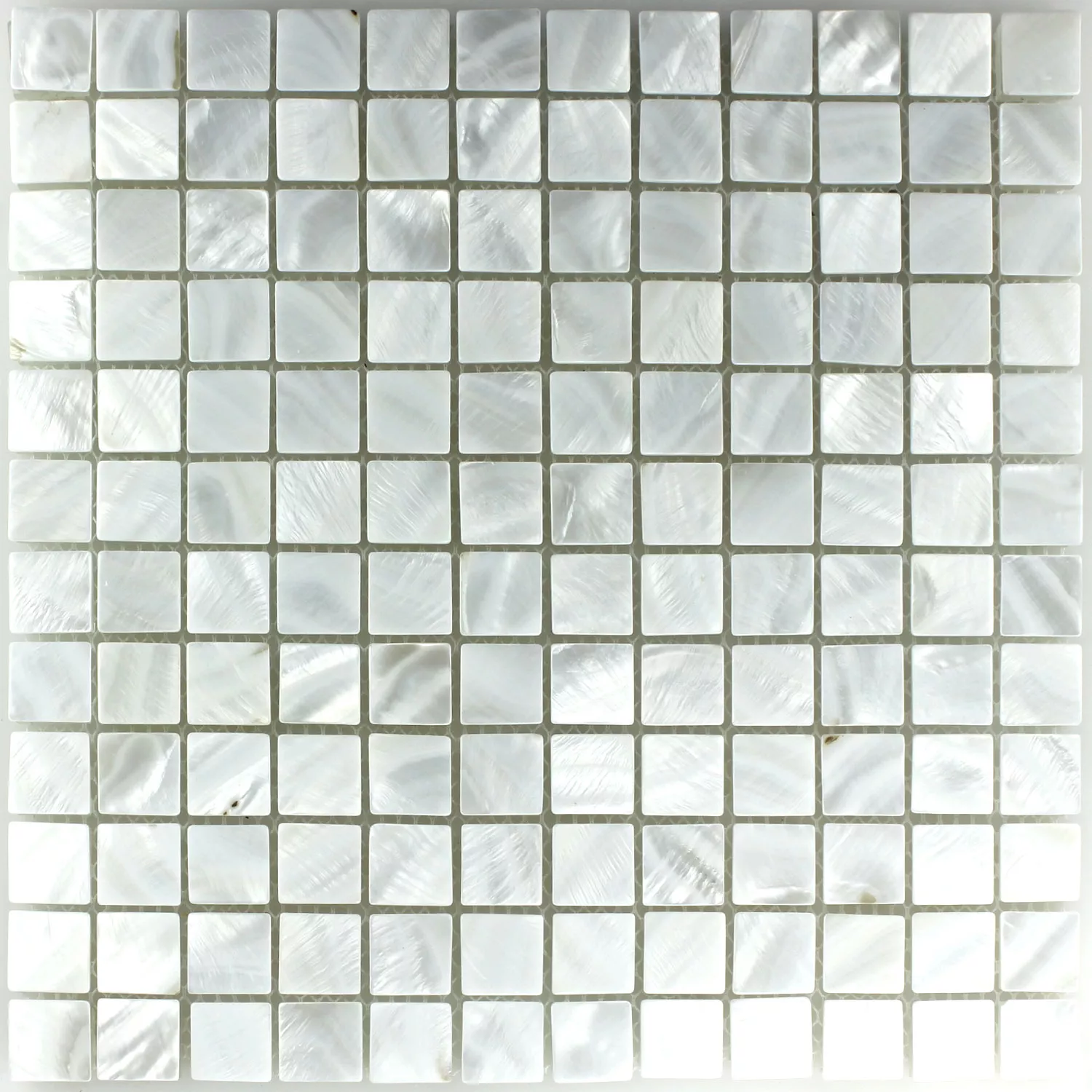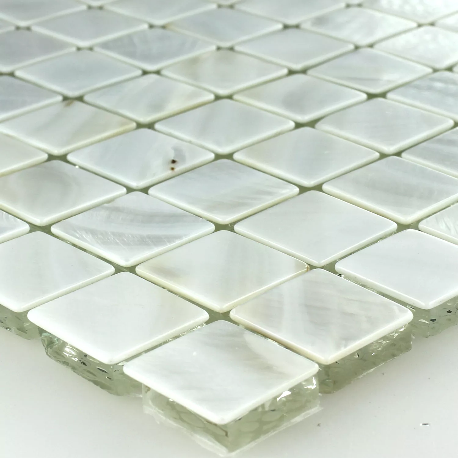 Model din Plăci De Mozaic Sticlă Efect Sidef Fildeş Alb