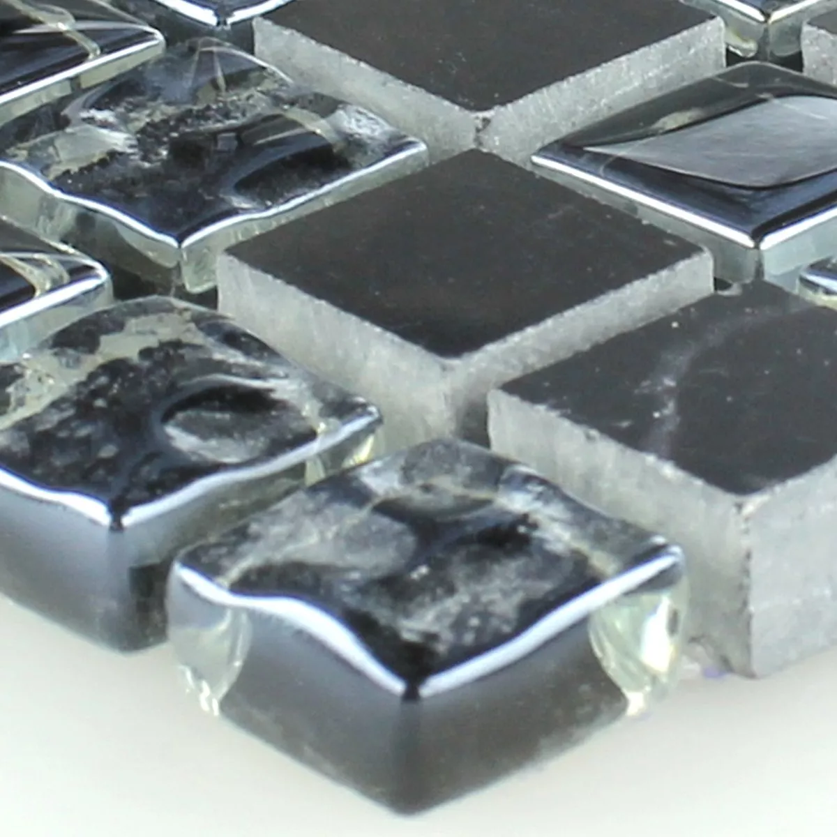 Model din Plăci De Mozaic Sticlă Marmură Piatră Naturală Negru Canelată