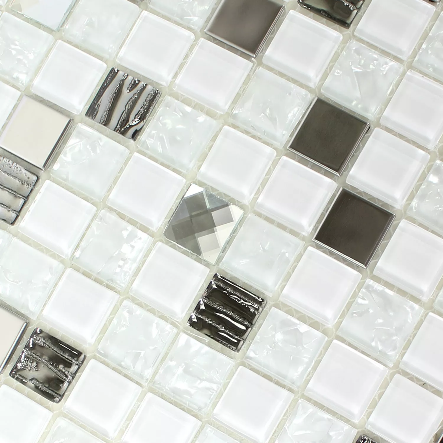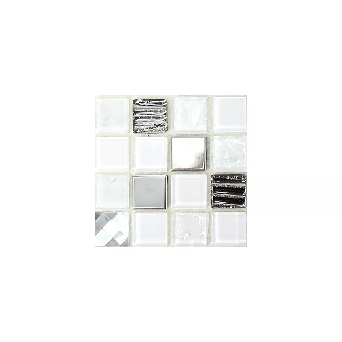 Model din Sticlă Oțel Inoxidabil Mozaic Amasya Autoadeziv Alb Argint
