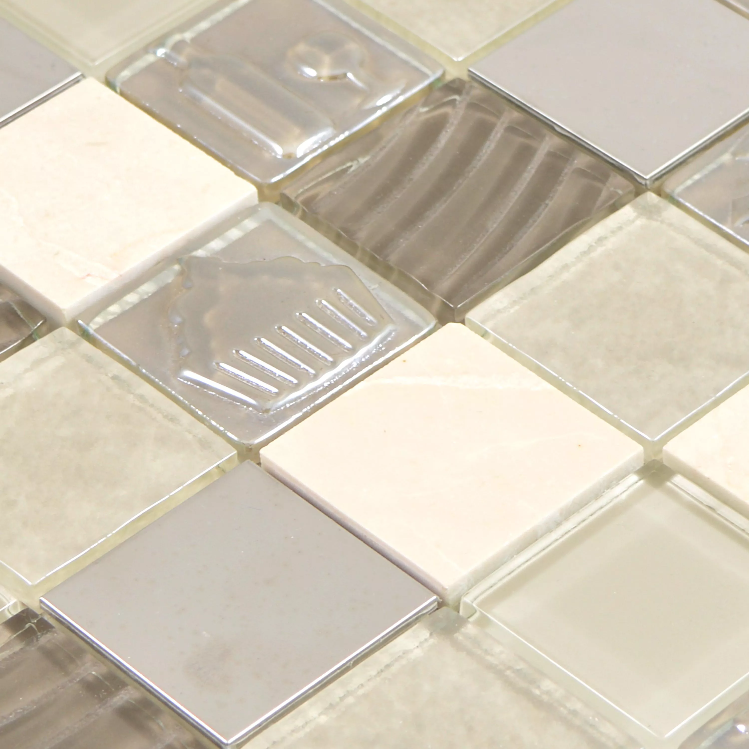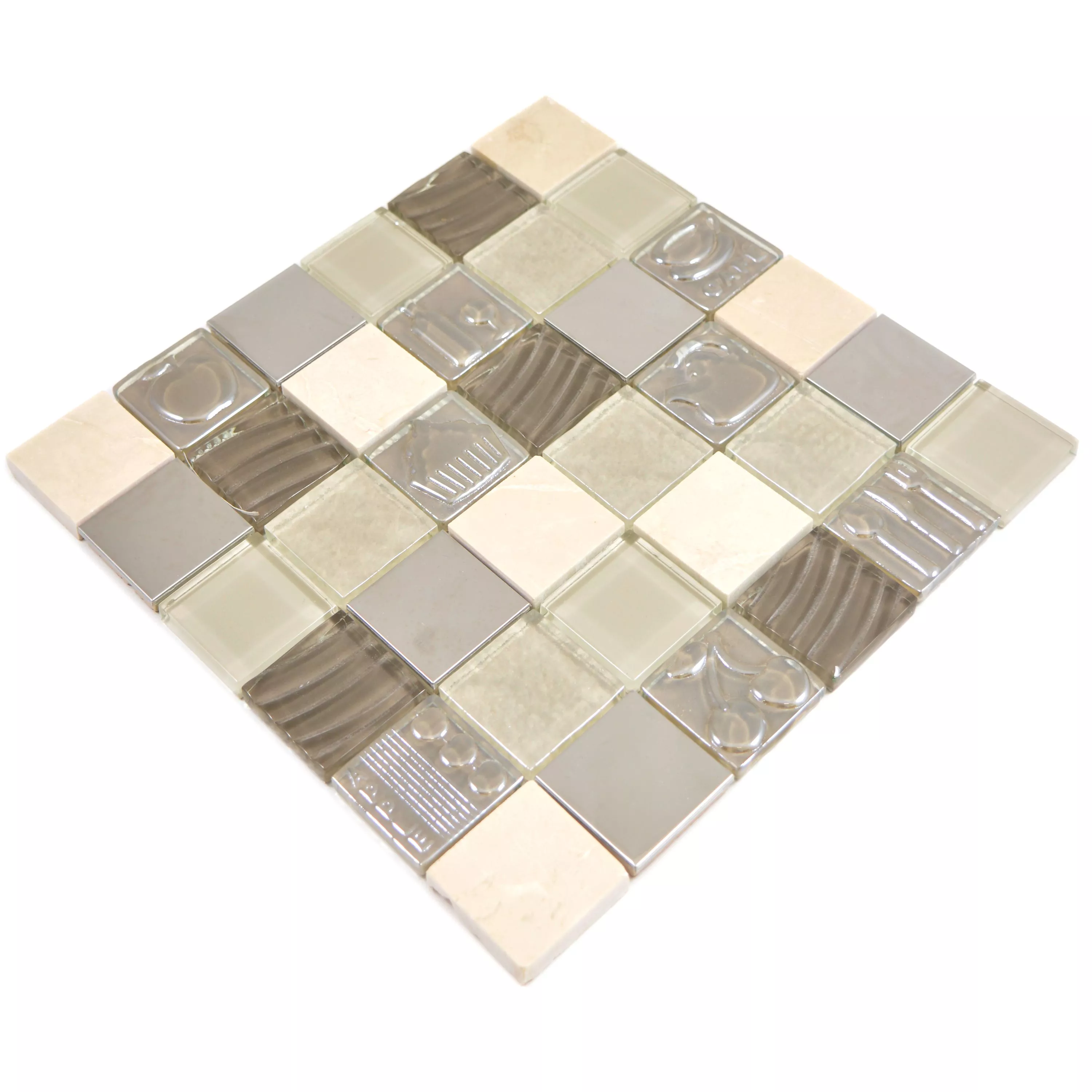 Model din Sticlă Oțel Inoxidabil Piatră Naturală Plăci De Mozaic Emporia Maro Bej Argint