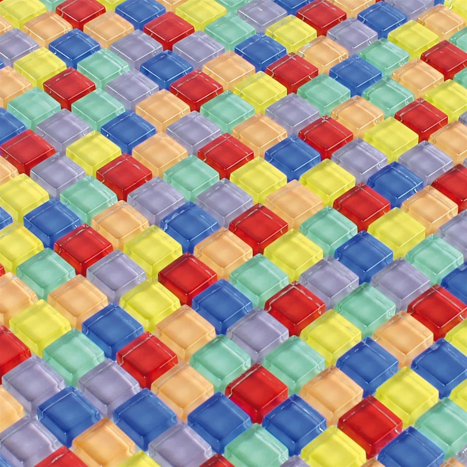 Plăcile de mozaic de sticlă Fredonia sunt amestecate colorat pe covorașul de transport. Sunt strălucitoare și potrivite pentru zonele umede.