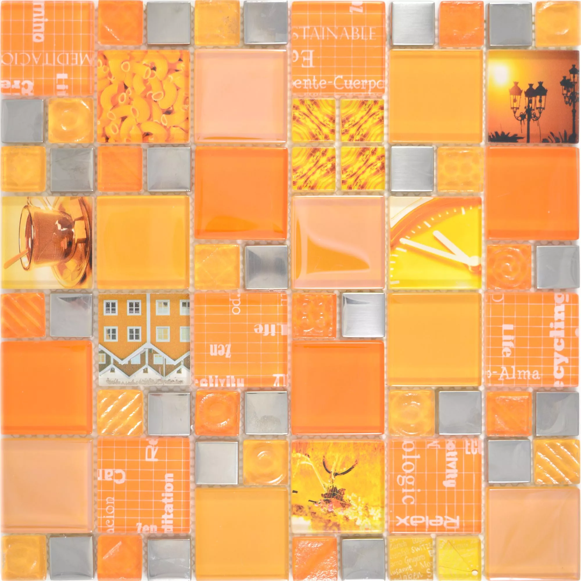Mozaic De Sticlă Gresie Nemesis Portocale Argint