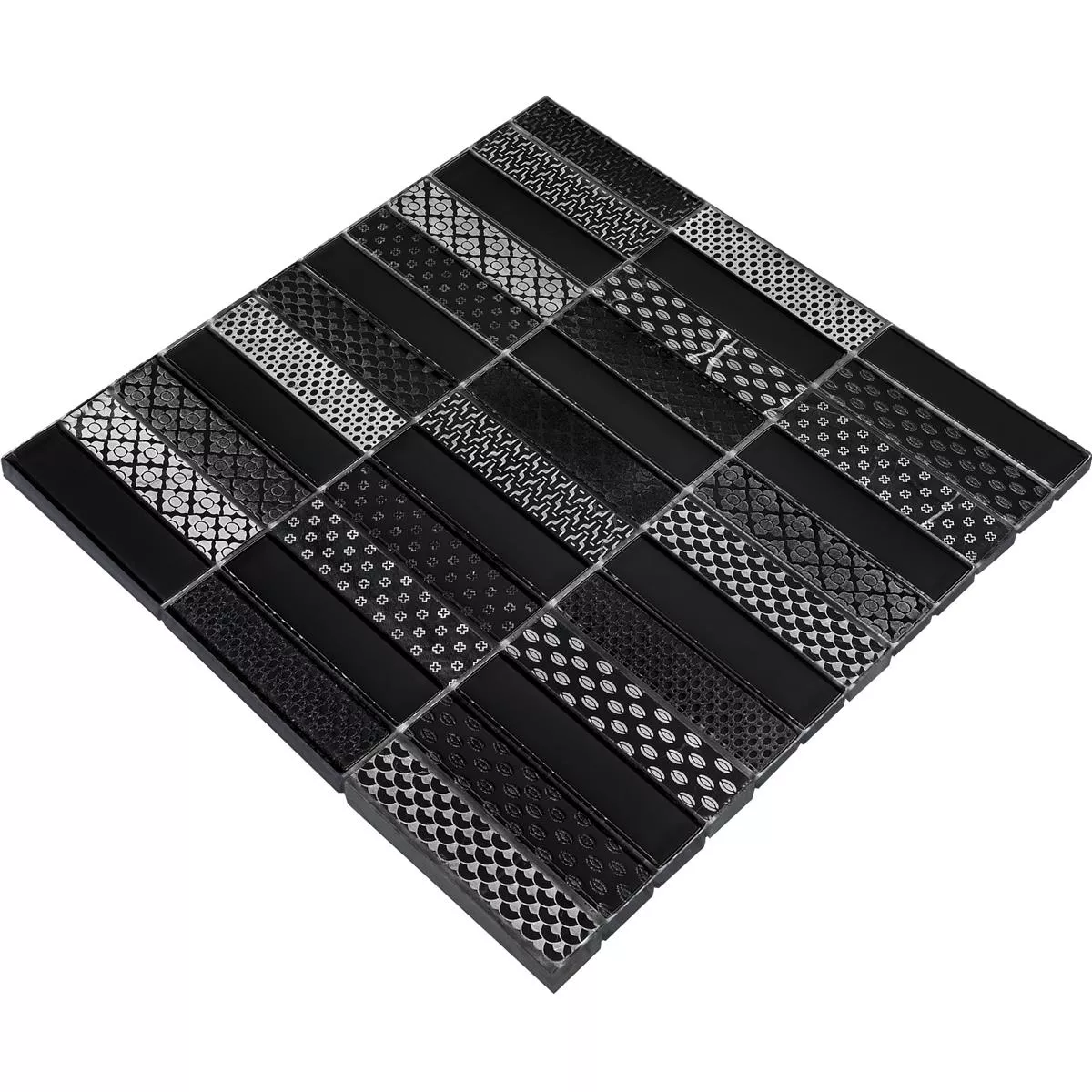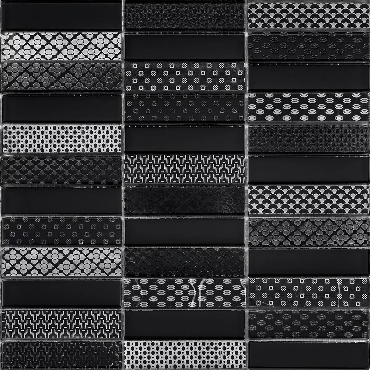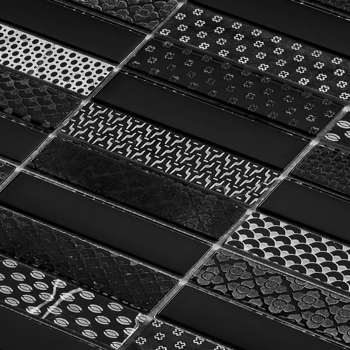 Placi de mozaic din piatra naturala din sticla Celestiana Ornament Brick Mix Black Mix - eleganta in rafinament intunecat.