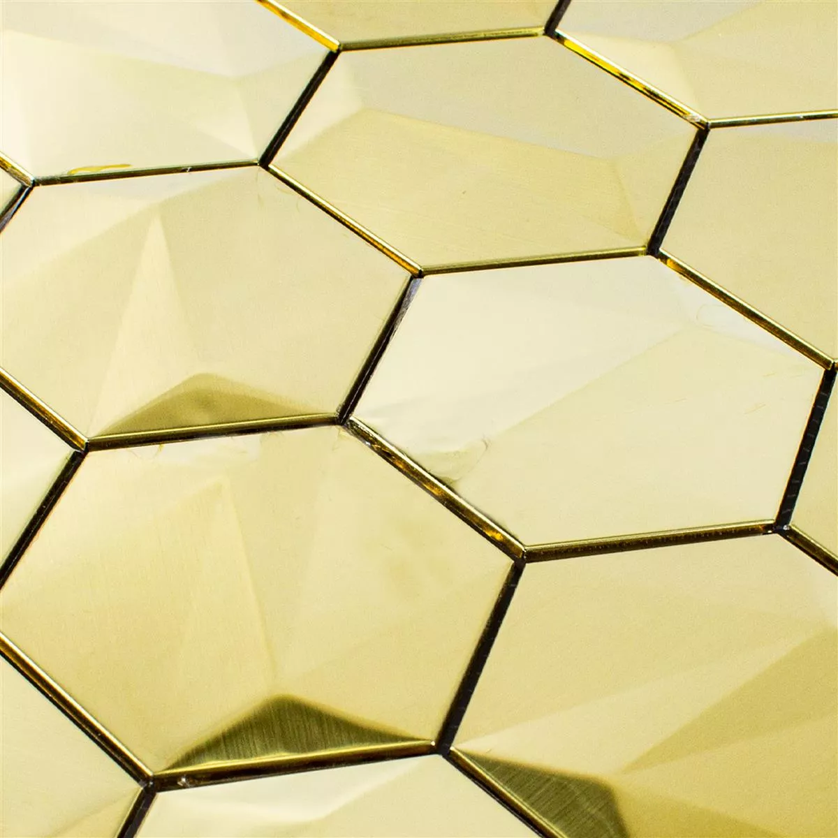 Placile din mozaic din oțel inoxidabil Durango Hexagon 3D Gold sunt o adevărată atracție a ochilor și oferă fiecărei camere un aspect luxos și modern. Cu culoarea lor aurie, aduc o atmosferă caldă și elegantă în interior.
