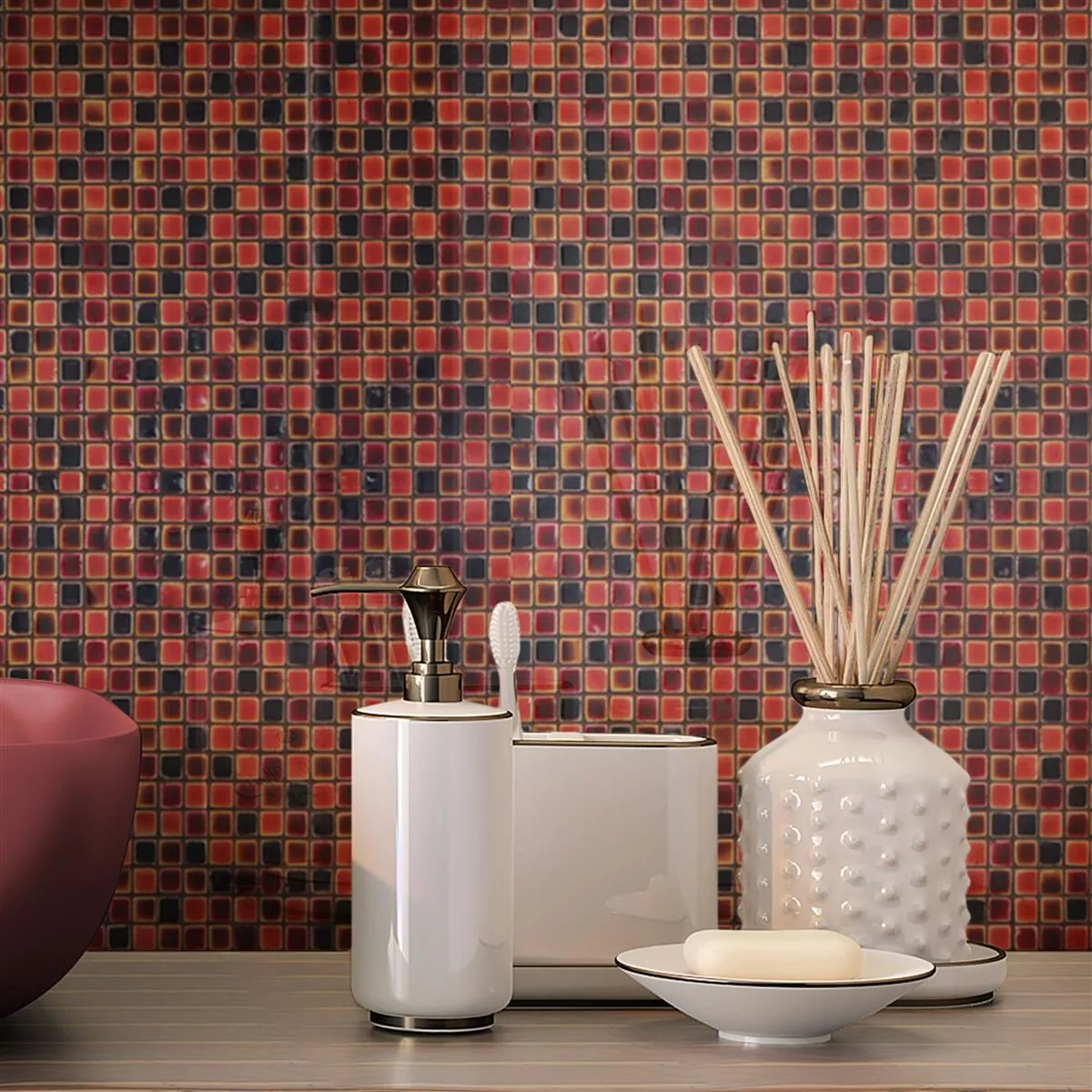 Explorați frumusețea impresionantă cu plăcile de mozaic din piatră naturală Firestone Red Mix. Tonurile de roșu cald și negrul intens creează un aspect izbitor, care este subliniat și mai mult de suprafața strălucitoare. Fabricate din piatră naturală de înaltă calitate, aceste plăci de mozaic oferă nu numai un aspect vizual, ci și durabilitate.