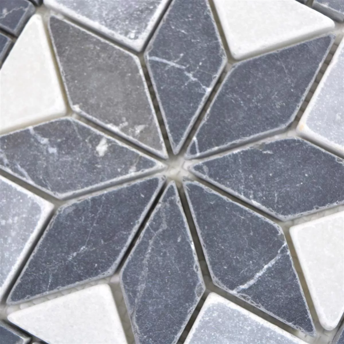 Placa din piatra naturala Rosone Lizard este o frumusete geroasa. Este negru, alb și gri și amintește de un fulg de zăpadă, o stea de iarnă sau chiar de îngheț. Există o răcoare frumoasă pe care o emană această țiglă. Pardoseala cu gresie arată proaspătă iarna, dar fără să pară rece și respingătoare. În ciuda culorilor strălucitoare, radiază prietenie și confort.