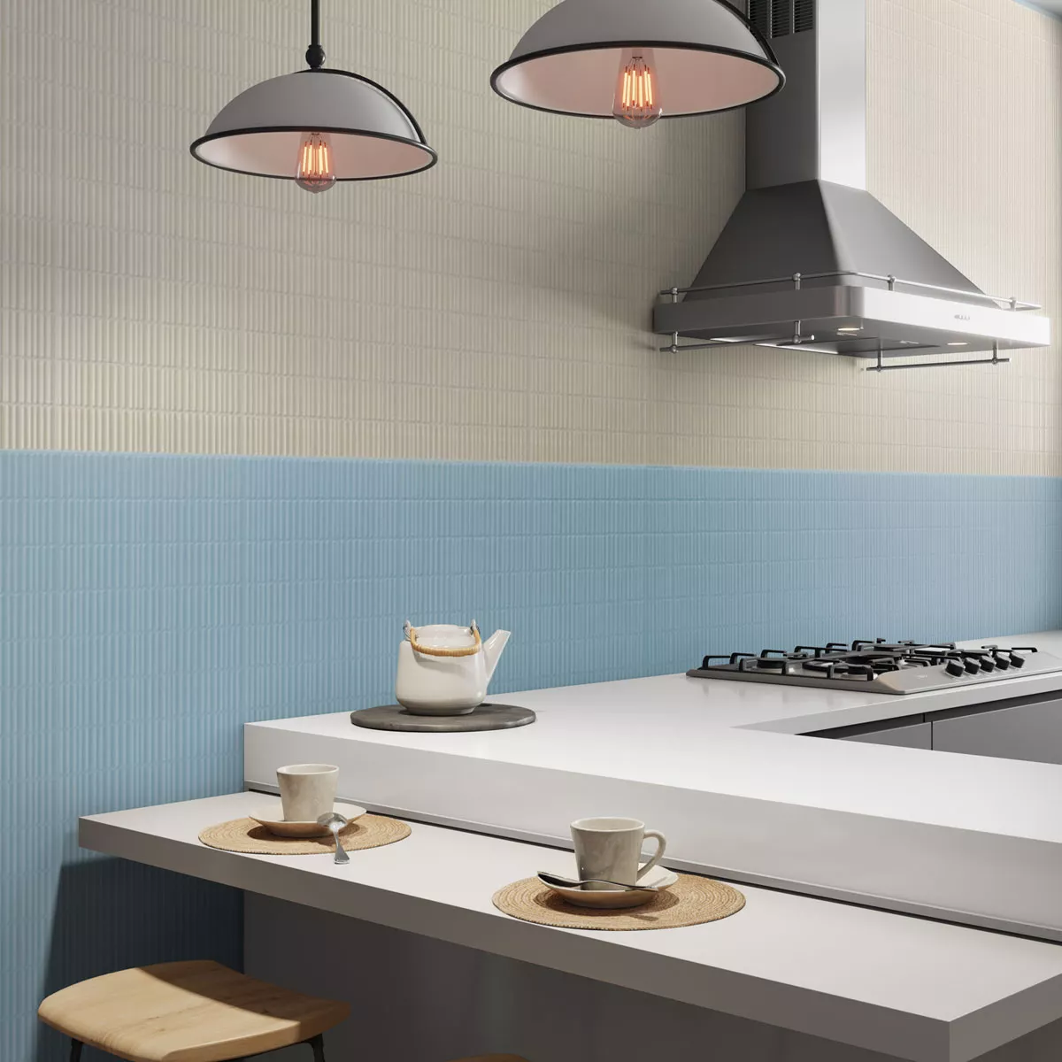 Placile noastre Avila Relief de un albastru strălucitor cu o structură în relief aduc o estetică revigorantă camerelor dumneavoastră și le oferă o notă de eleganță vintage.