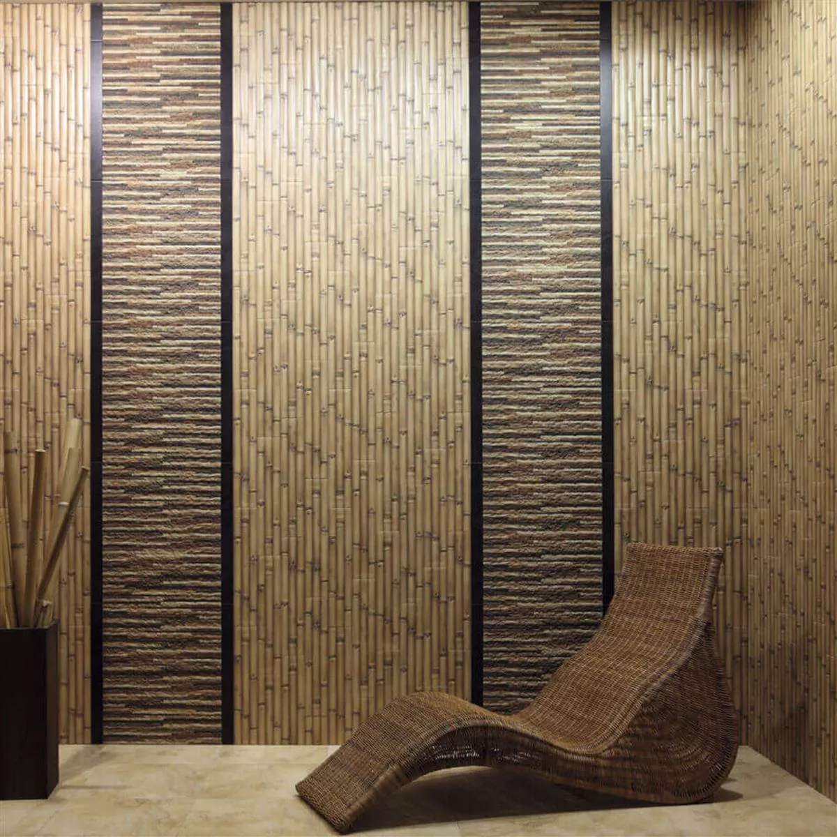 Aceste plăci de gresie de înaltă calitate cu aspect elegant de bambus combină designul modern cu eleganța funcțională.