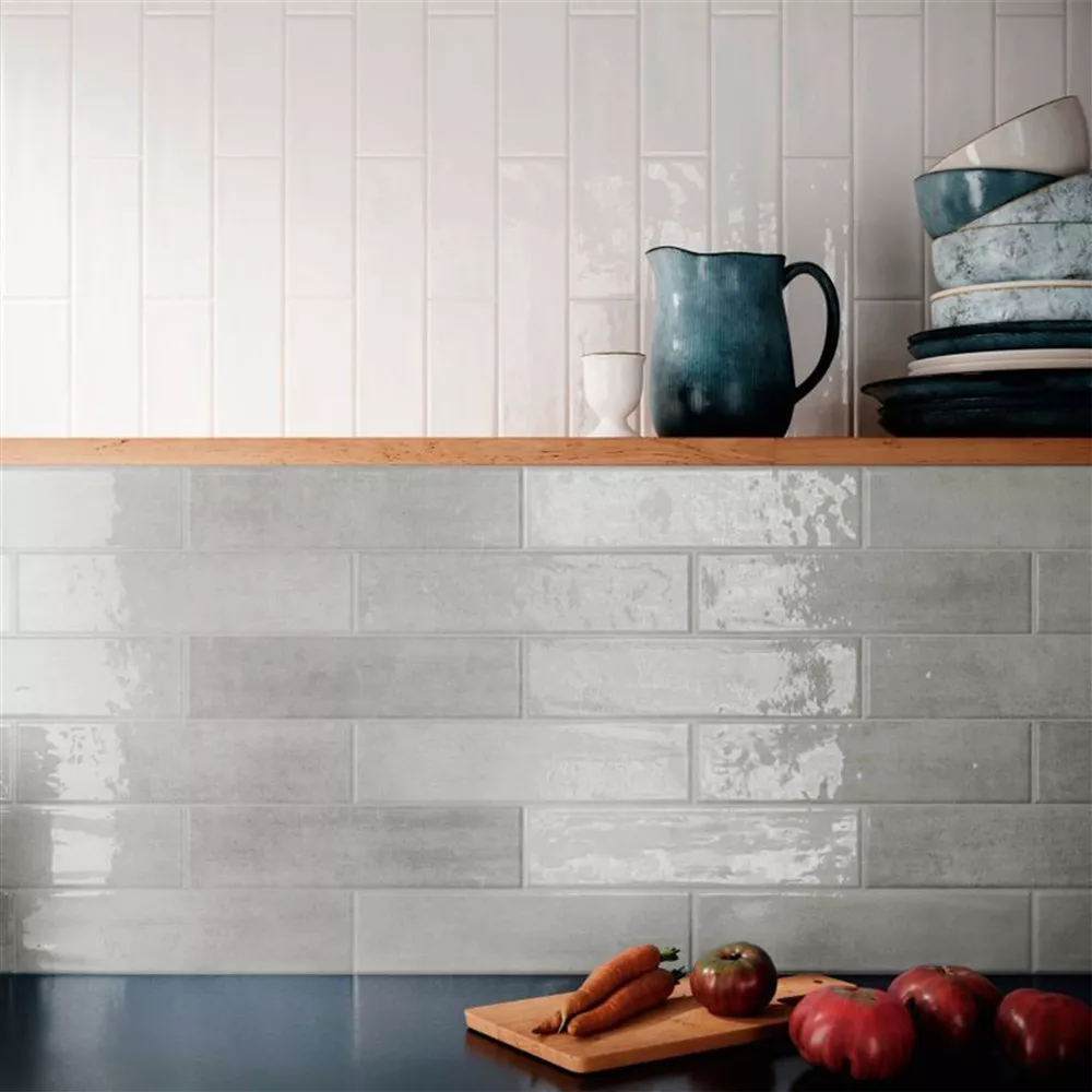 Aceste plăci dreptunghiulare smălțuite cu dimensiunile 7,5x30cm și 8,4mm grosime aduc o estetică vintage camerelor tale. Suprafața ondulată și strălucitoare conferă pereților tăi o dinamică subtilă.
