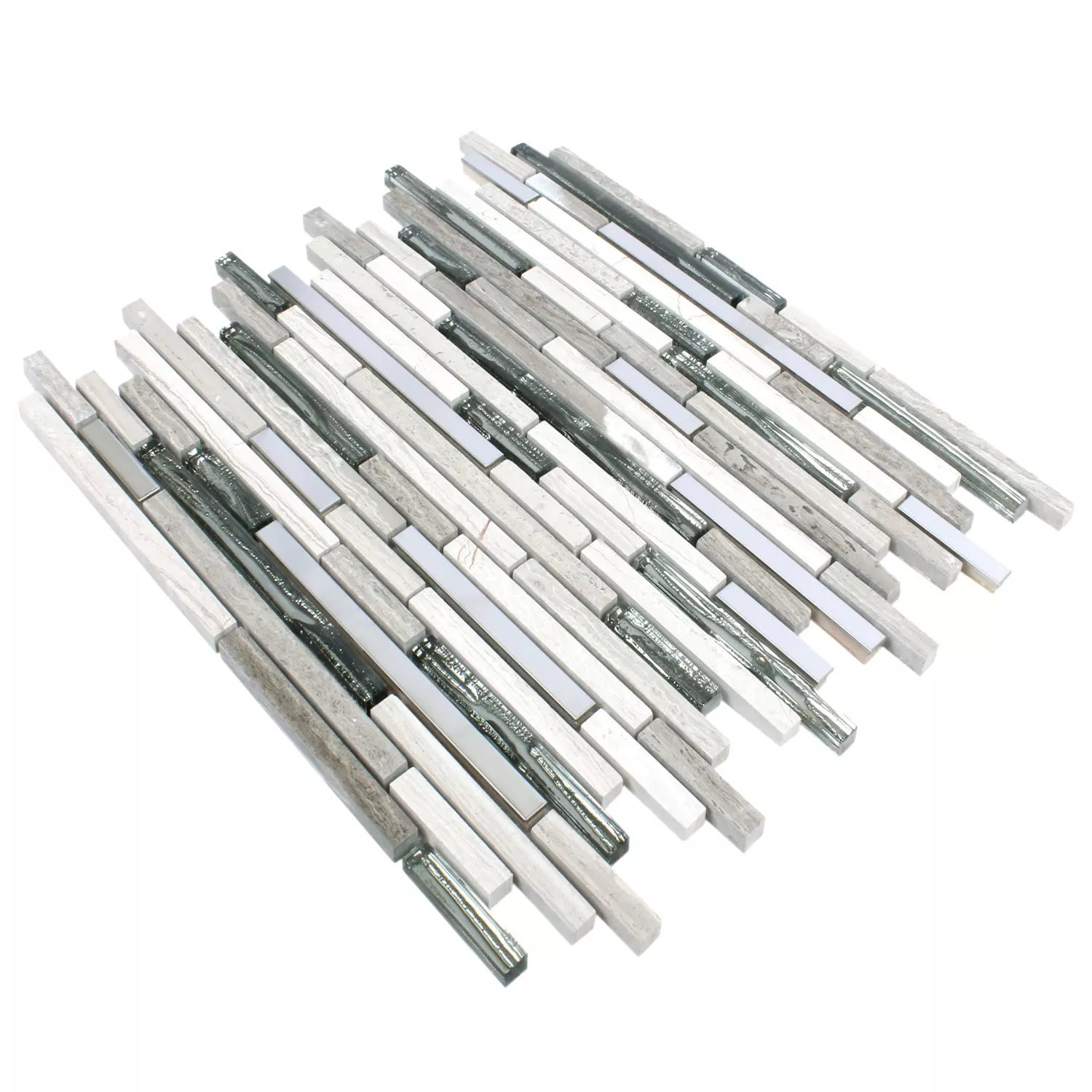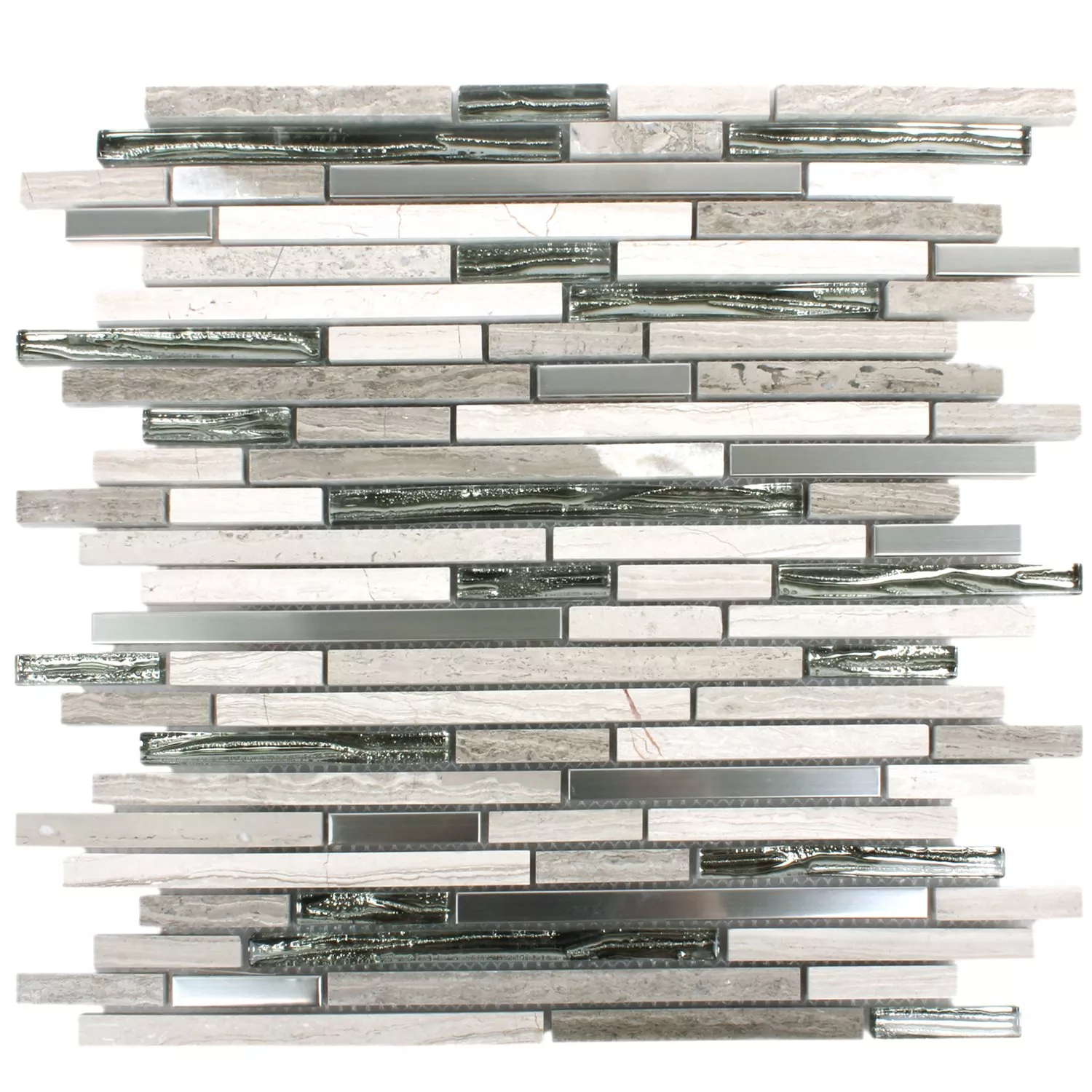 Das Mosaik sieht sehr edel aus, wenn es verlegt ist. Die Stahlstäbe geben einen tollen Kontrast zu den Glas- und SteinStäben. Zu Empfehlen. Schnelle, unkomplizierte Lieferung.