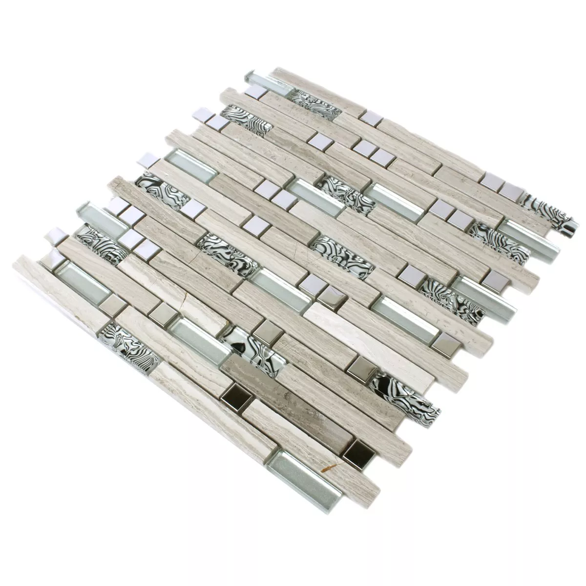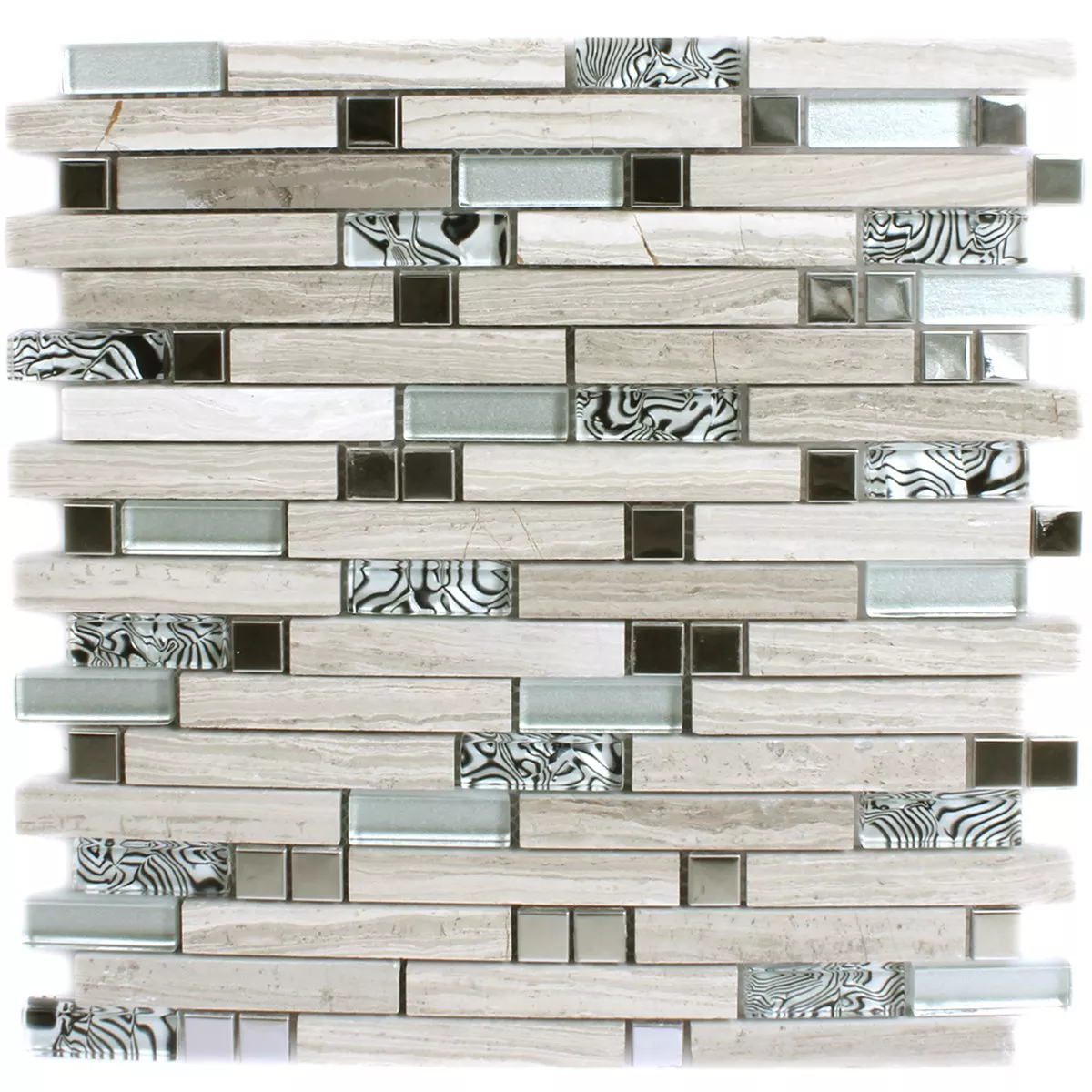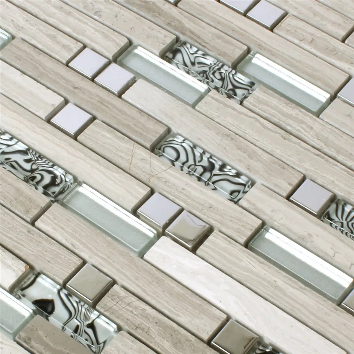 Plăci De Mozaic Metal Sticlă Piatră Naturală Gri Argint Mix