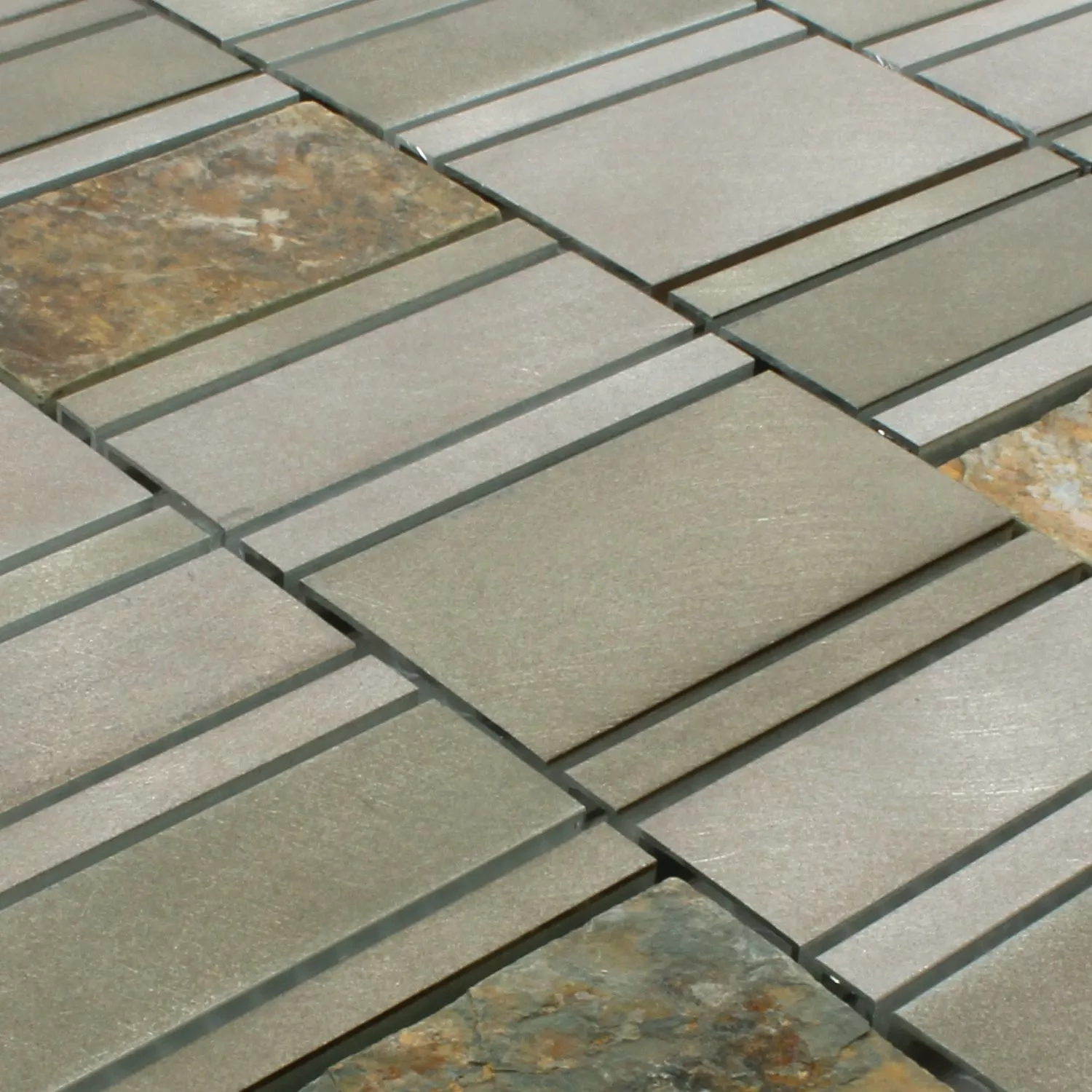 Placile moderne de mozaic adaugă o notă de lux peretelui, deoarece multe dintre plăcile frumoase impresionează prin designul lor unic și materialele de înaltă calitate. Modelele Avanti impresionează și ca plăci din piatră naturală din aluminiu cu cea mai bună manoperă în fiecare detaliu. Placile fine de mozaic sunt ușor de așezat, astfel încât să poată face pereții să strălucească într-o clădire nouă sau după renovare într-o clădire veche în cel mai scurt timp. Culorile Avanti Brown și Avanti Grey sunt disponibile pentru toate încăperile casei. Placile de perete subtil colorate sunt dispuse in dreptunghiuri de diferite dimensiuni, uneori din aluminiu, alteori din piatra naturala. Acest lucru înseamnă că fiecare perete cu plăci din piatră naturală din aluminiu rămâne un punct culminant vizual în cameră, deoarece ochiul privitorului nu se plictisește niciodată de aceste plăci frumoase mozaic.