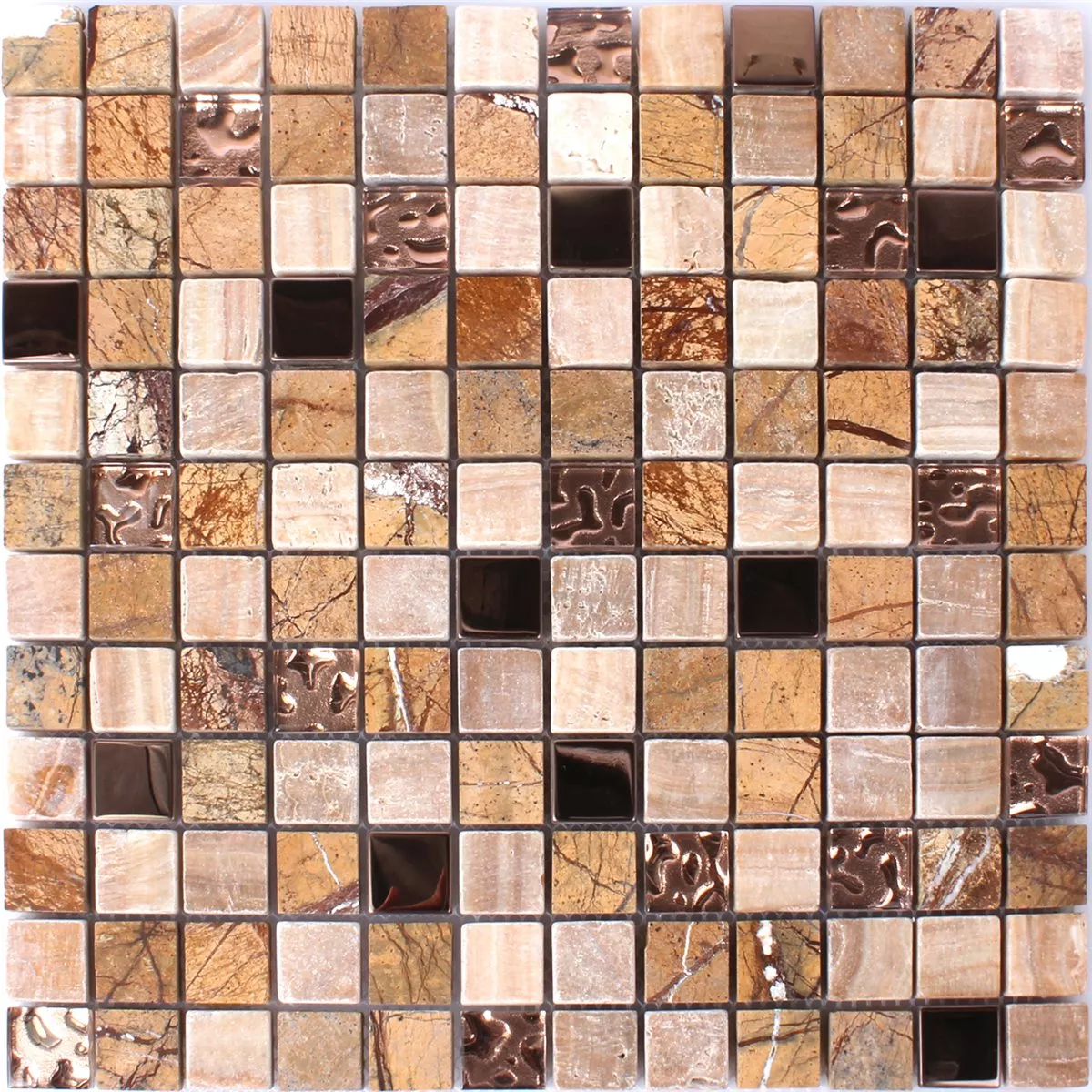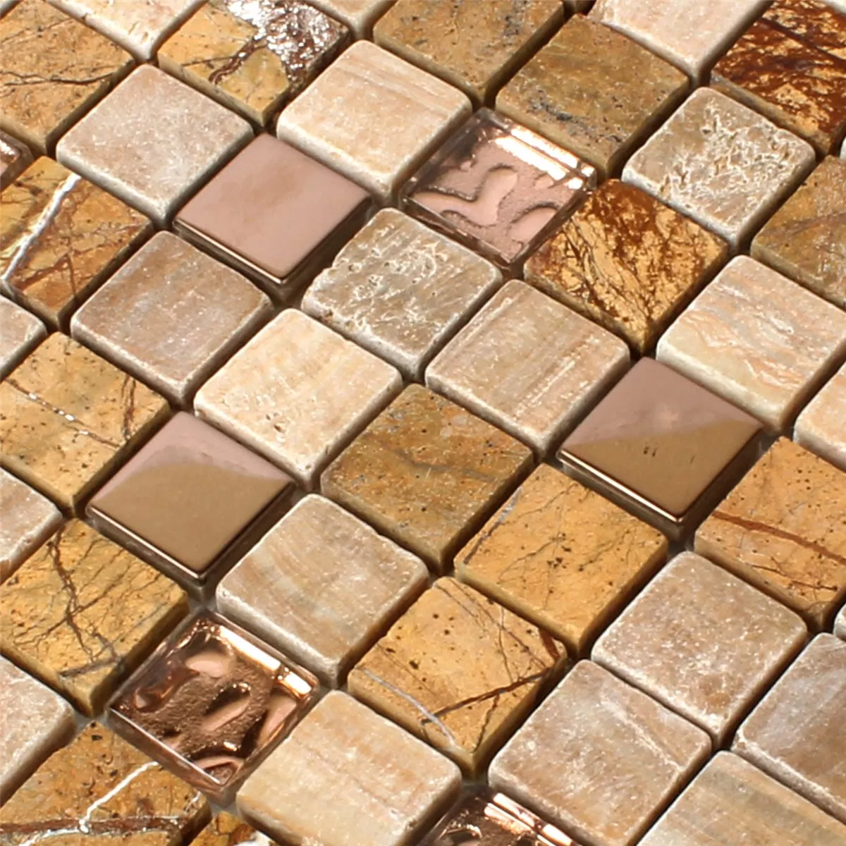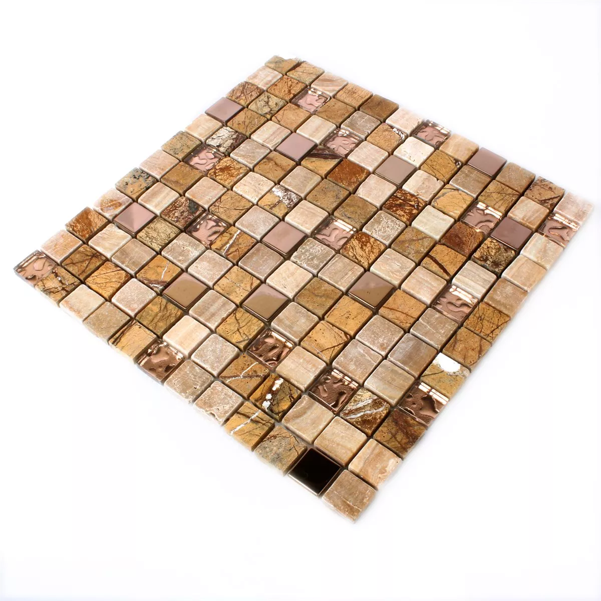 Plăci De Mozaic Sticlă Piatră Naturală Oțel Inoxidabil Maro Mix