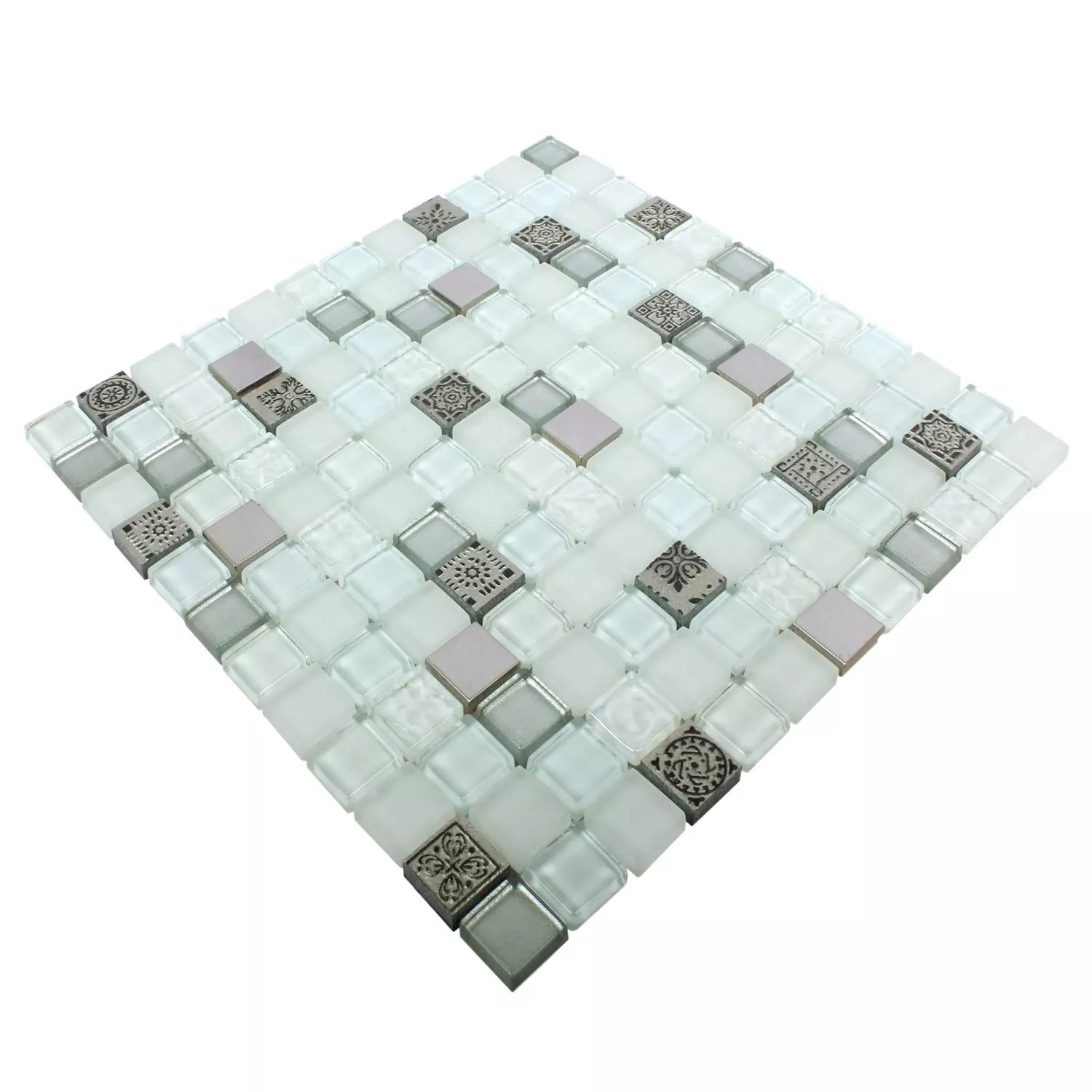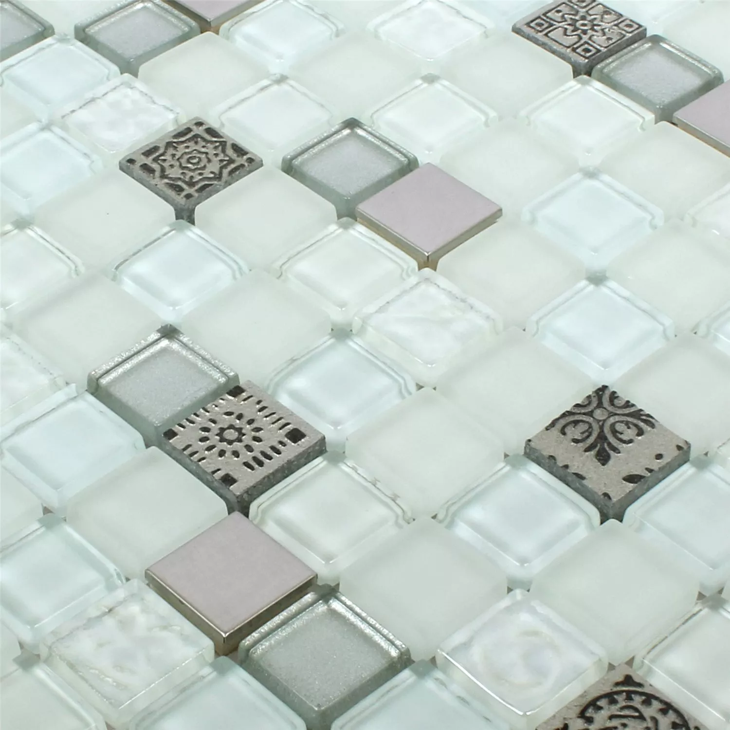 Plăci De Mozaic Sticlă Răşină Oțel Inoxidabil Mix Gramos Alb