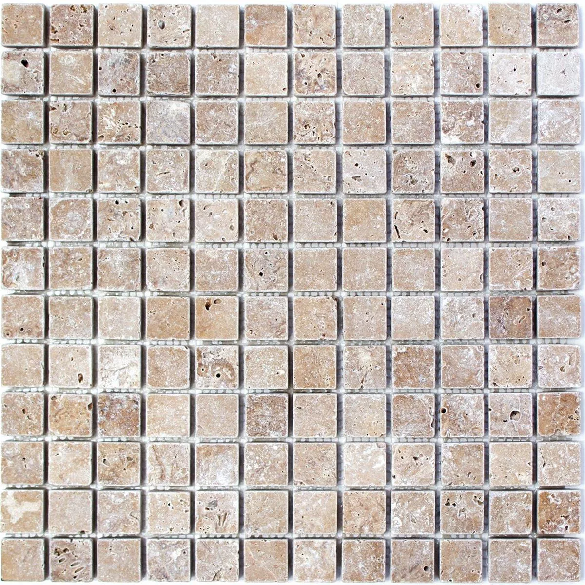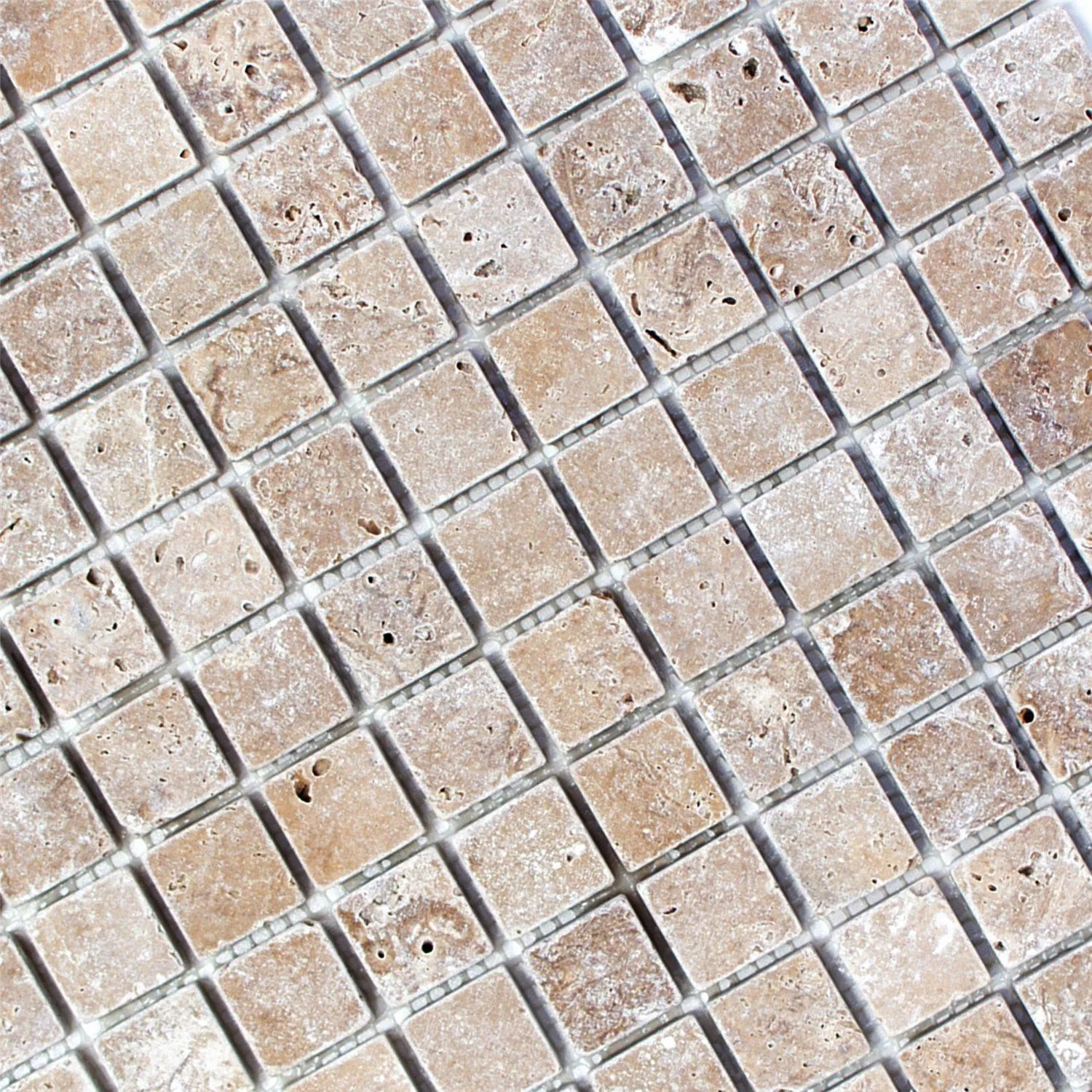 Die Mosaikfliesen Travertin Patara Noce 23 bestehen aus terrestrischer Sedimentgestein, der durch einen Prozess der schnellen Ausfällung von Kalziumkarbonat an der Mündung von heißen Quellen oder in Kalksteinhöhlen gebildet wird. Travertin Patara Noce hat oft ein faseriges oder konzentriertes Aussehen und besteht in weißer, brauner, cremefarbener und rostiger Sorte. Diese Natursteinfliesen bringen einzigartige Wärme in Küchen, Wohnräume und Bäder. Travertin wird häufig in modernen Häusern als ein natürliches und stabiles Baumaterial verwendet.