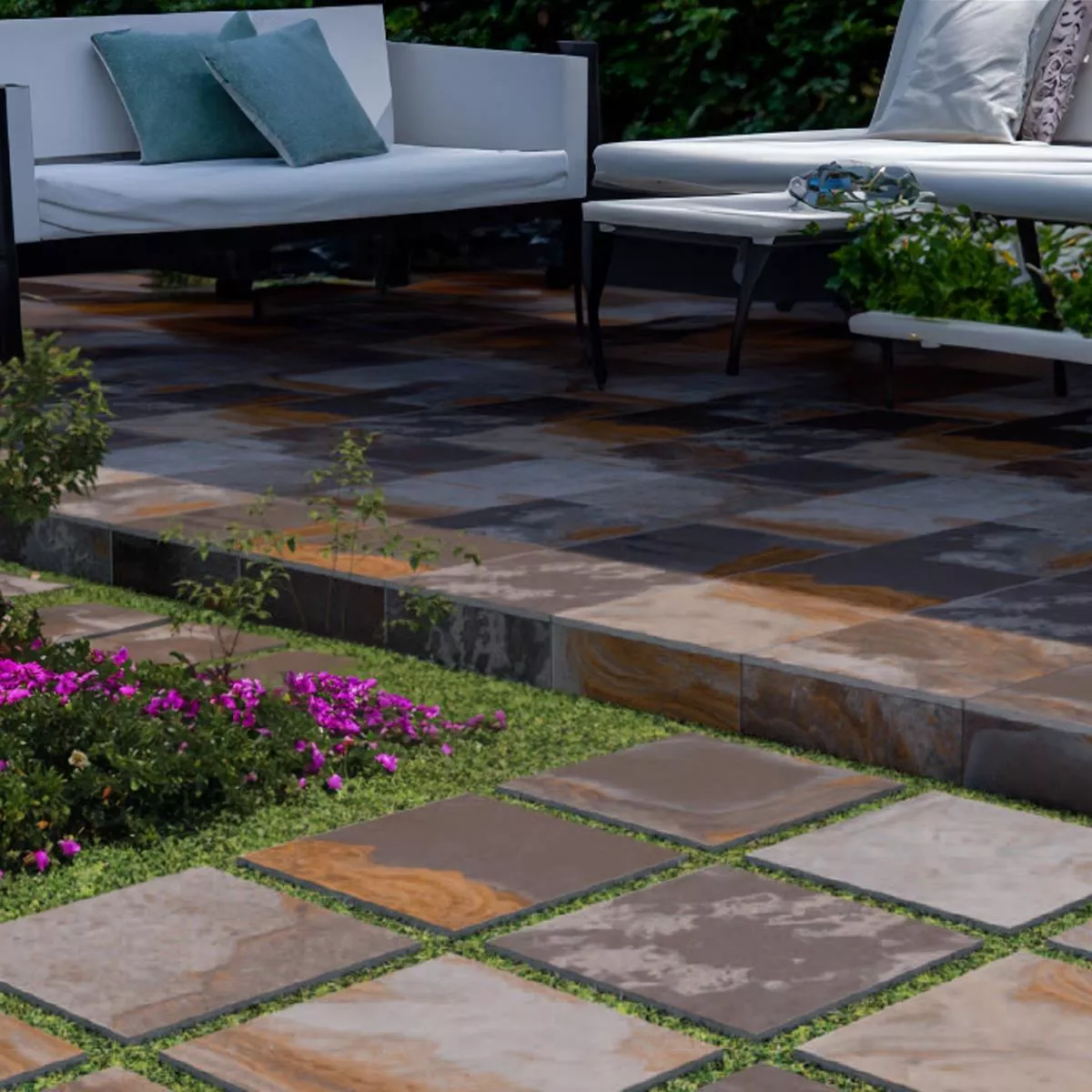 Placile de terasa Sanleo in bronz imbina frumusetea atemporala a pietrei naturale cu durabilitatea gresiei portelanate. In formatul 60x60cm si o grosime de 20mm, ofera o combinatie perfecta de estetica si functionalitate.