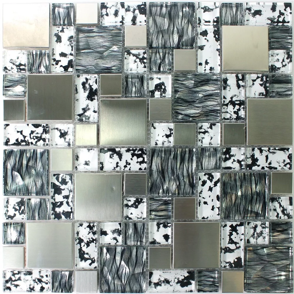 Sticlă Oțel Inoxidabil Mozaic Rio Negru Argint Alb