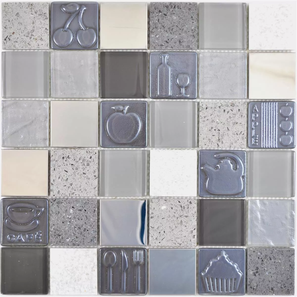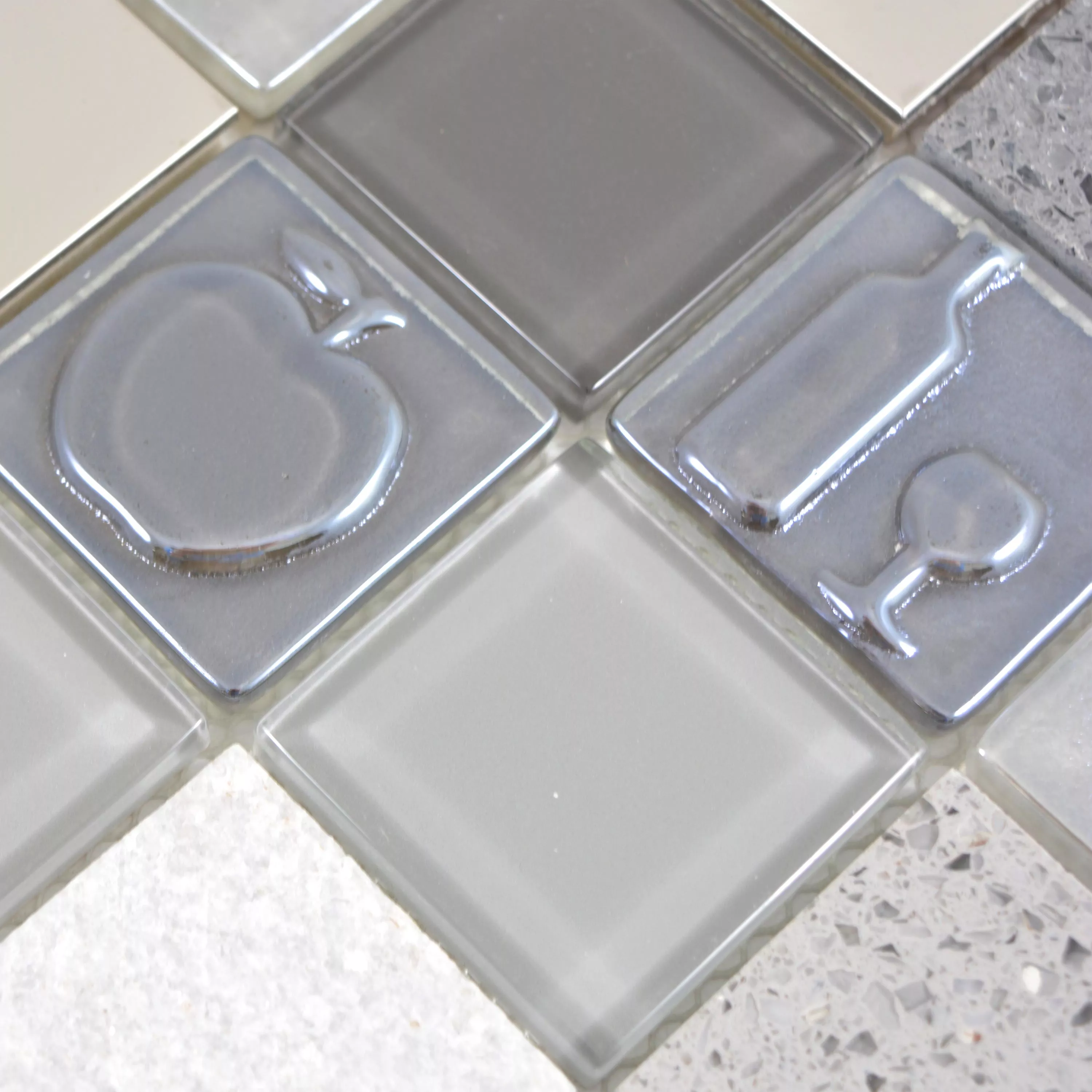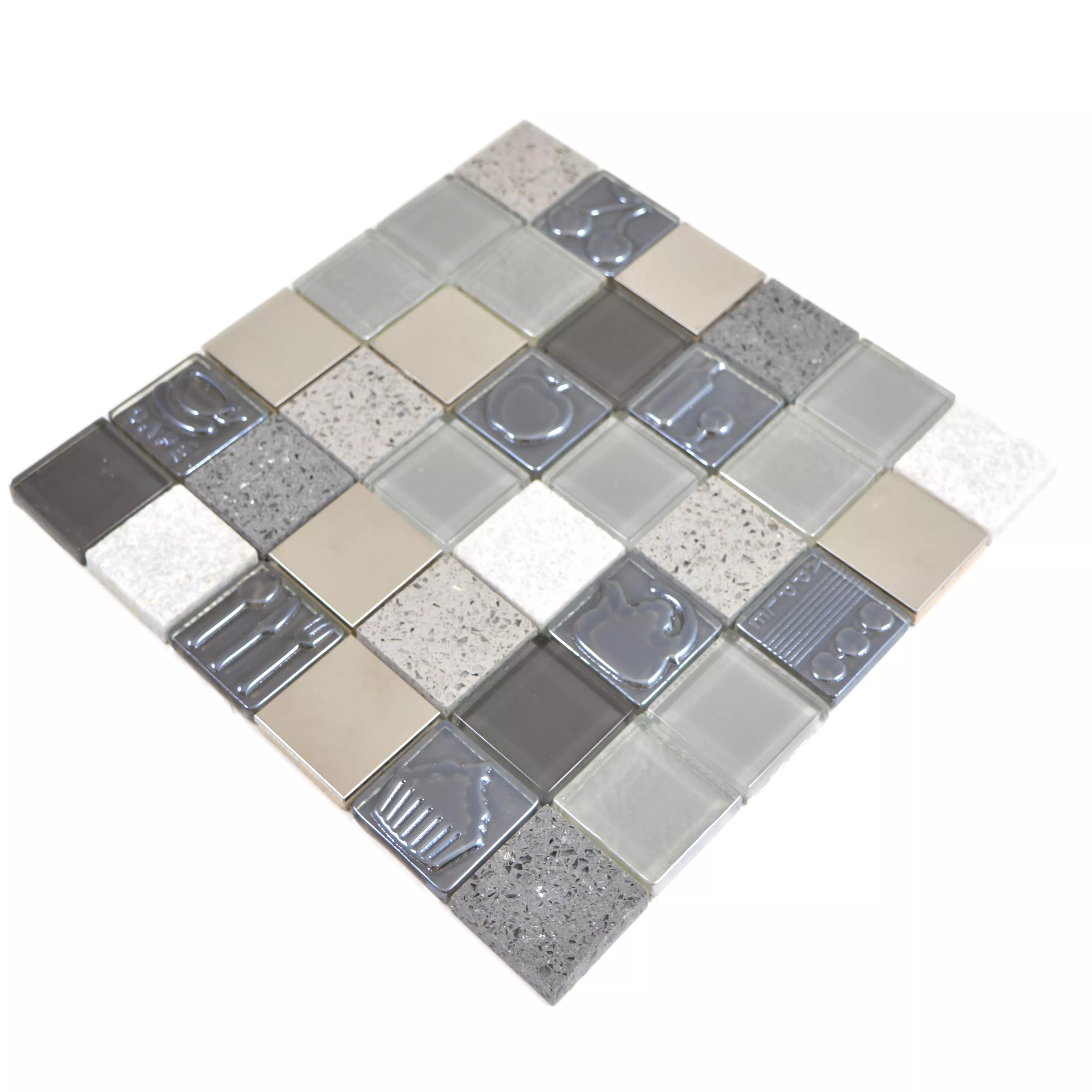 Sticlă Oțel Inoxidabil Piatră Naturală Plăci De Mozaic Emporia Gri Argint