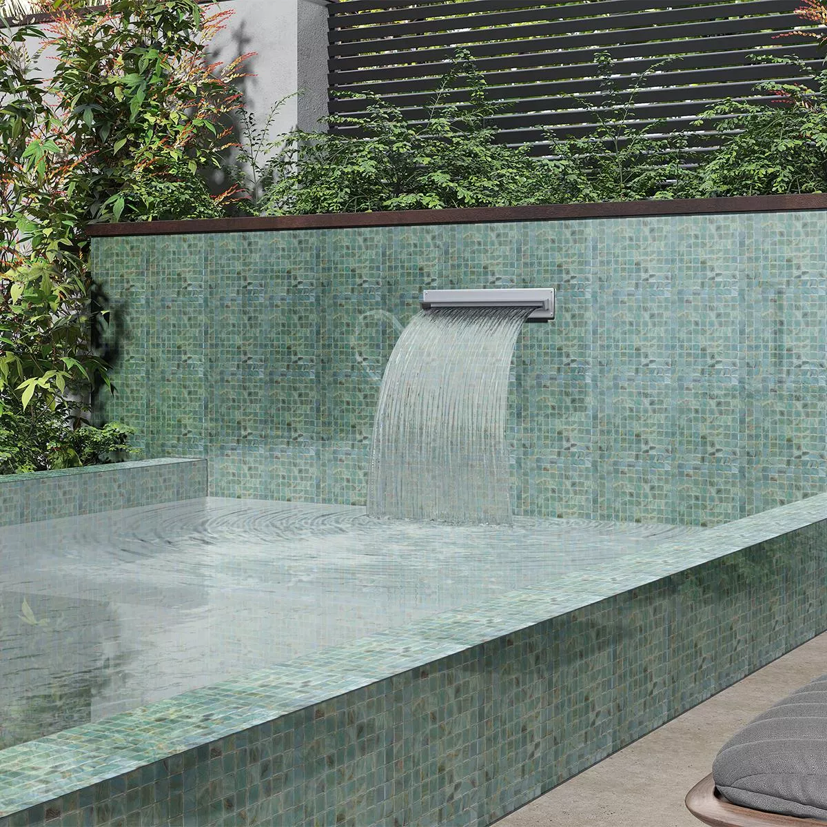 Placa de mozaic pentru piscină Alassio în turcoaz aduce un aspect plin de viață și proaspăt designului tău. Cu un covoraș de 31,6 x 31,6 cm și o grosime de 4 mm, această gresie este ideală pentru pereți și pardoseli. Realizată din sticlă ecologică de înaltă calitate, faianta se caracterizează printr-un aspect strălucitor de piatră naturală, care conferă camerelor moderne o notă elegantă.